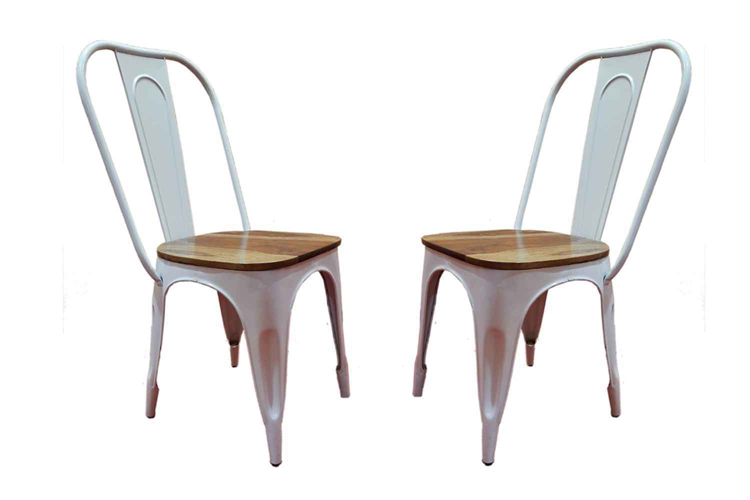 Pair of Molding wood top metal White  finish chair made by powder coated iron with Sheesham wood top. that is beautiful iron chair use for Dining and outdoor furniture. O My Furniture deal in solid wood furniture like living room furniture, bedroom furniture, Dining room furniture, study room furniture. O My Furniture work only on quality Furniture on very affordable price.
