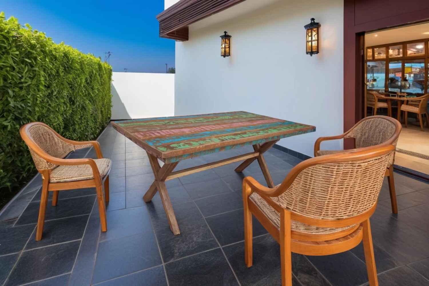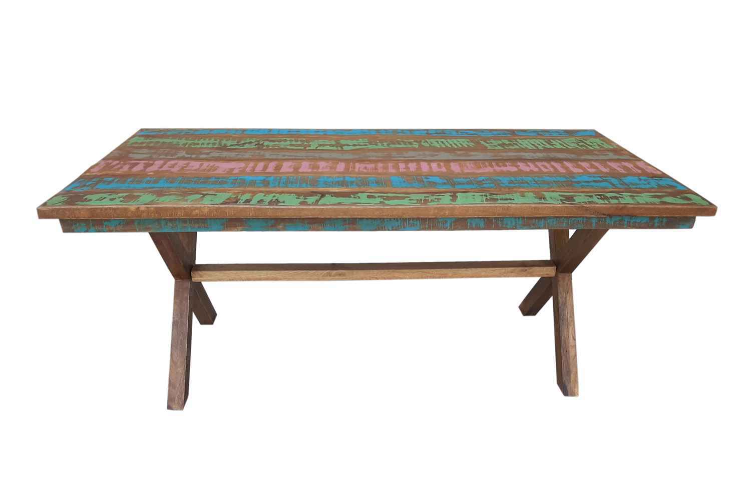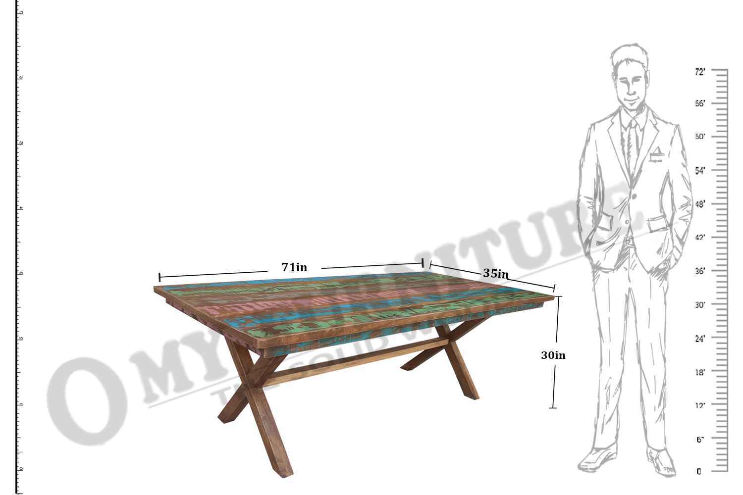 Clapton 6 seater solid wood old finish Dining table made by mango wood with old color finish with aara cutting. This is long cross leg dining table is a perfect piece for you dining room. O My Furniture deal in solid wood furniture like living room furniture, bedroom furniture, Dining room furniture, study room furniture. O My Furniture work only on quality Furniture on very affordable price
