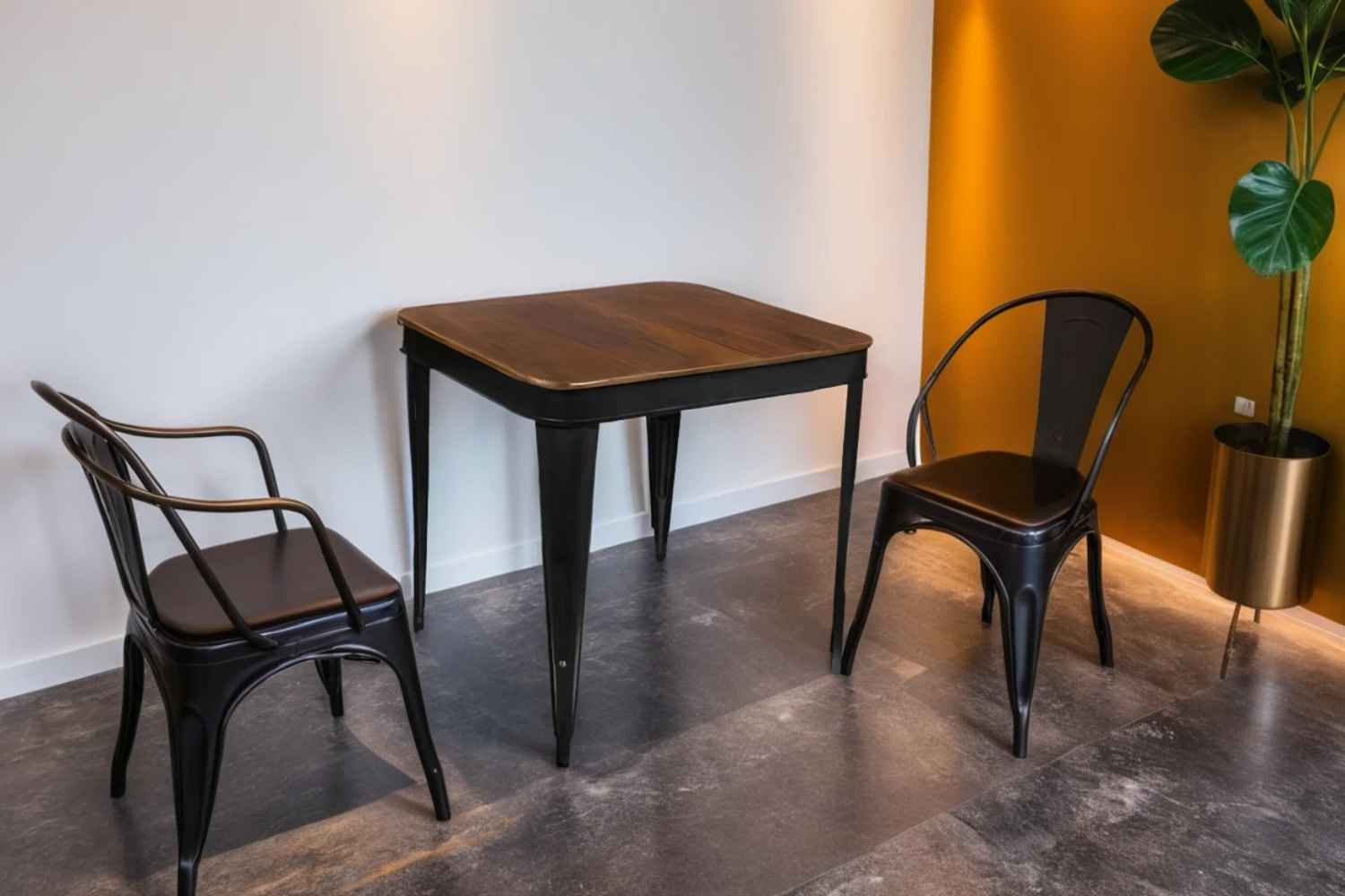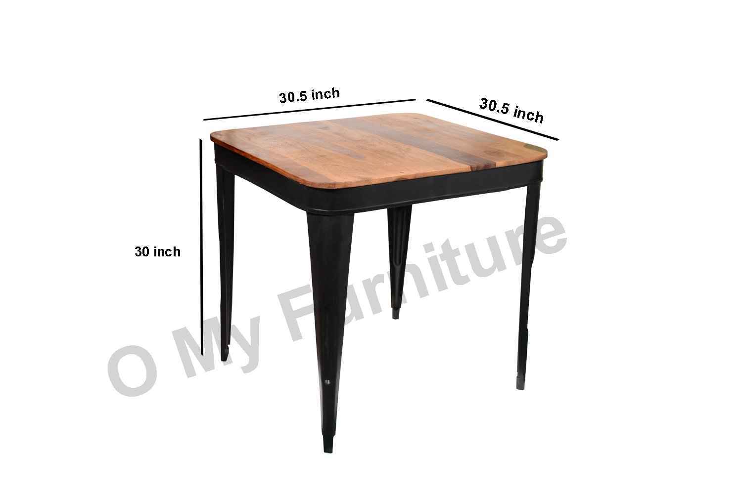 Restro 4 seater solid wood dining table made by sheesham solid wood and Iron with dark teak finish and Black mate finish Powder Coated. That is 4 seater designer Restaurant dining table. It's Foldable leg give a unique look. O My Furniture deal in solid wood furniture like living room furniture, bedroom furniture, Dining room furniture, study room furniture Restaurant furniture. O My Furniture work only on quality Furniture on very affordable price.