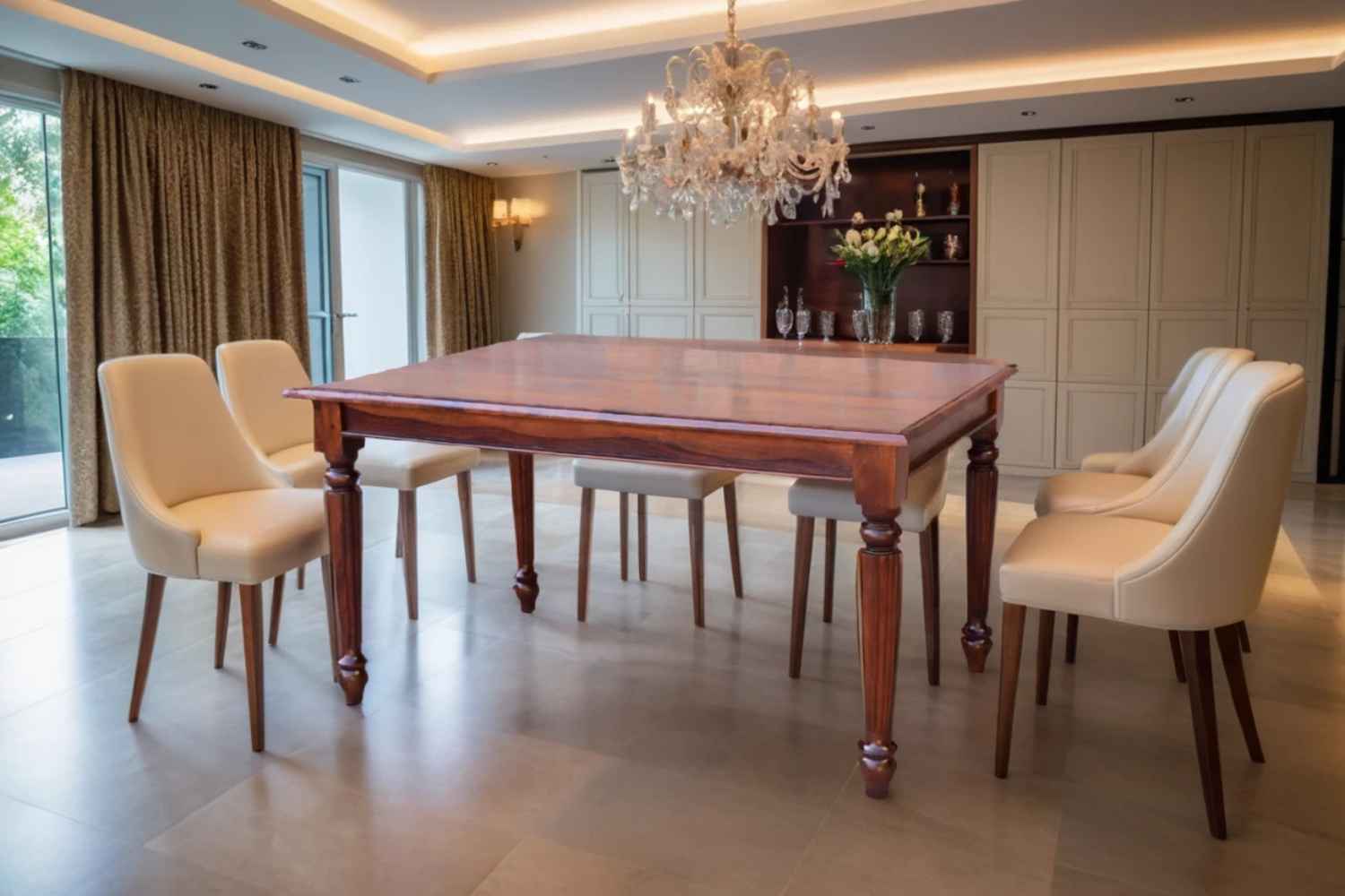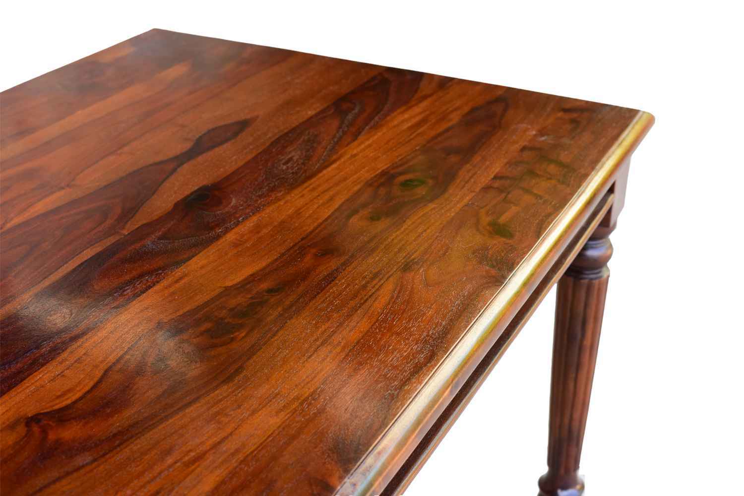 SPL dining table is make your Interior more beautiful.It made by Sheesham (Rosewood) with teak finish.This Sheesham wood dining table has square shape design with well finished carving in top frame.It is eight sitting dining table with good space. Sheesham wood furniture is always best choice to purchase solid wood furniture online.