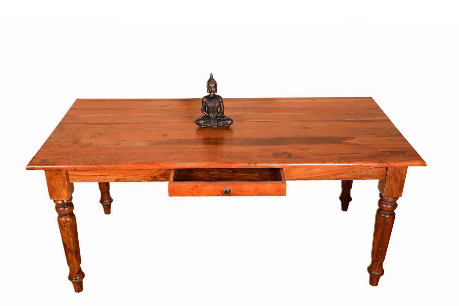 SPL dining table is make your Interior more beautiful.It made by Sheesham (Rosewood) with teak finish.This Sheesham wood dining table has square shape design with well finished carving in top frame.It is eight sitting dining table with good space. Sheesham wood furniture is always best choice to purchase solid wood furniture online.