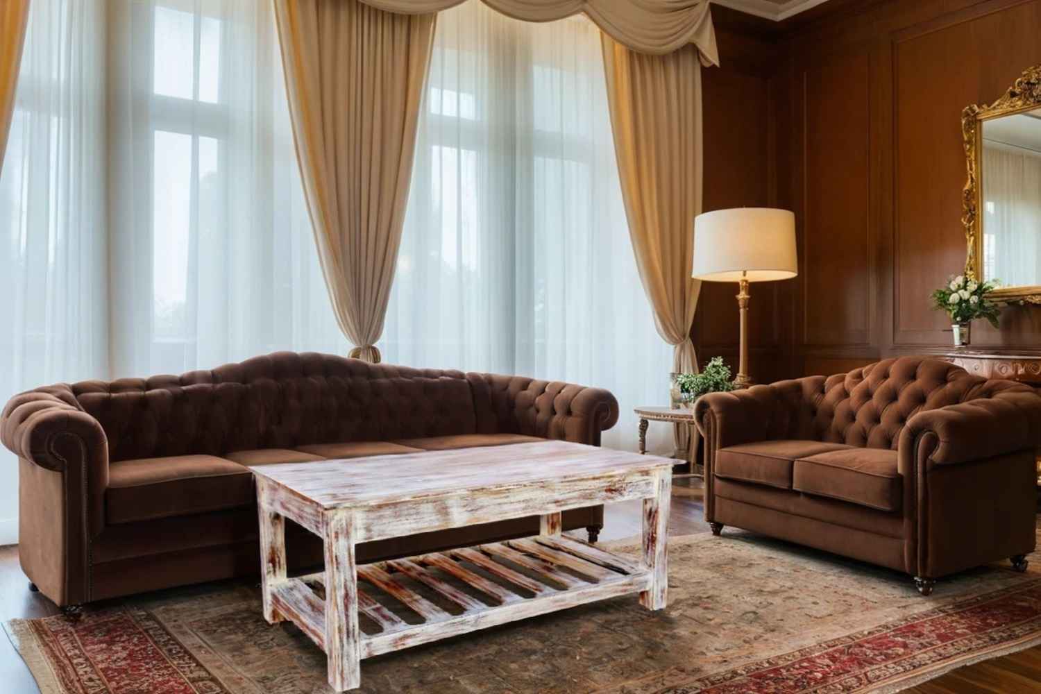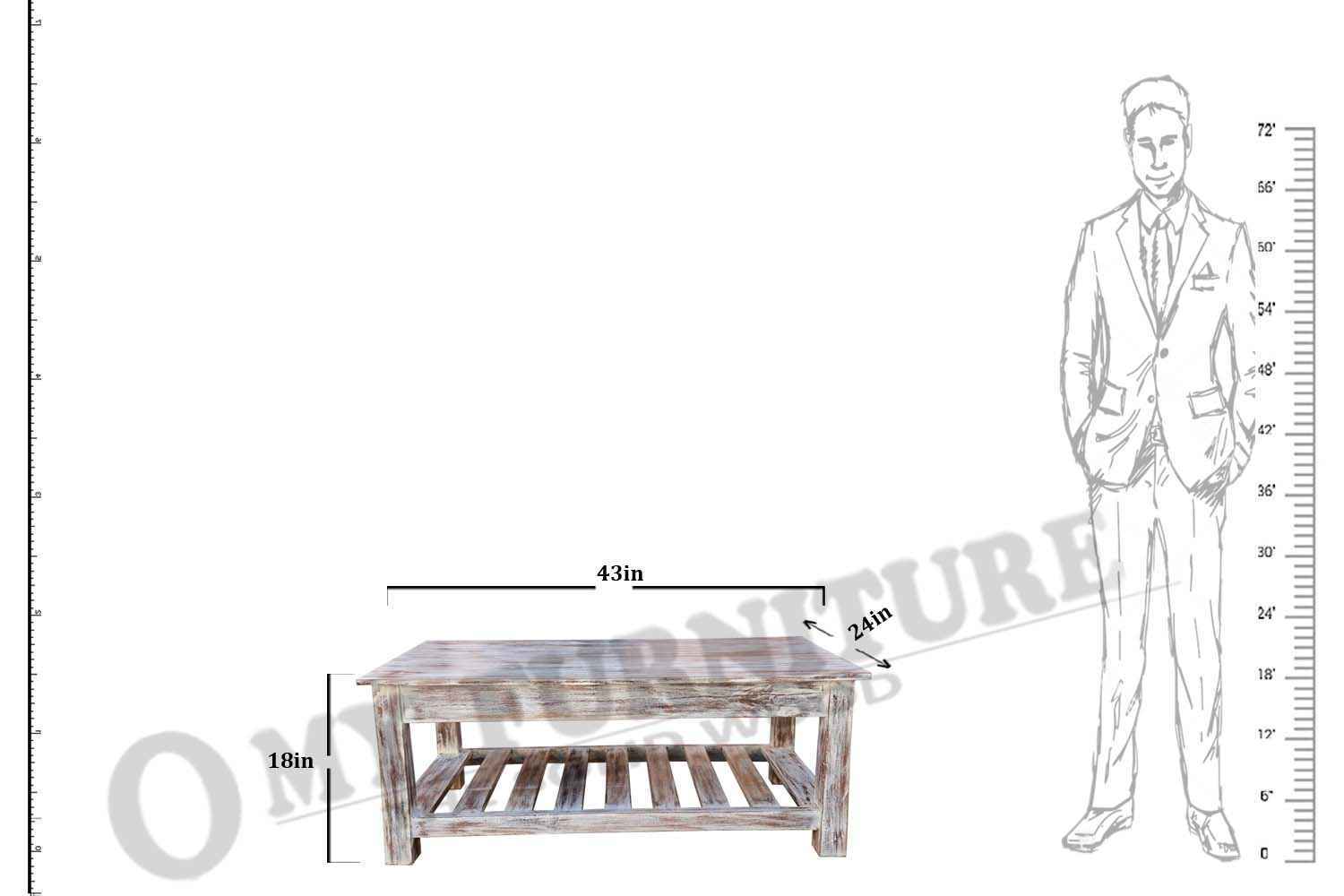 Quondam bottom shelf coffee table is made by Acacia wood with bleach finish. Bleach finish for giving this product rough look.This coffee table have two slit line design on bottom left and right side. A rectangle bottom shelf is attached with their legs. That gives antique look. Solid wood furniture always count in best quality furniture.O my furniture a complete Solid wood furniture stores help to increase your living room and bedroom decorum.