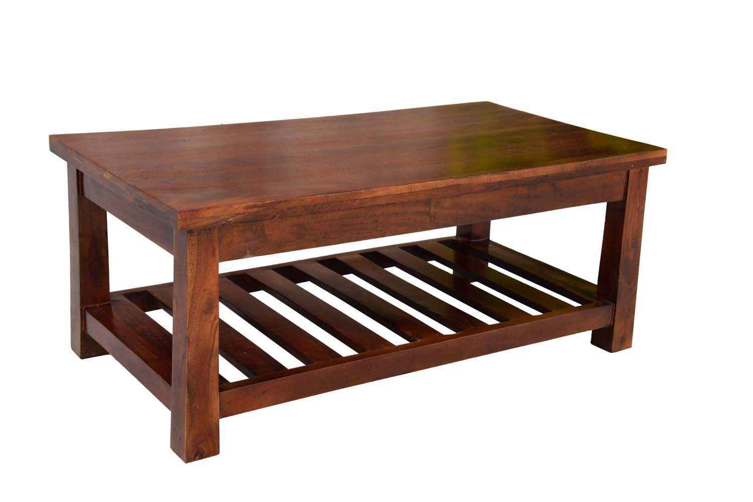 Quondam bottom shelf coffee table is made by Acacia wood with bleach finish. Bleach finish for giving this product rough look.This coffee table have two slit line design on bottom left and right side. A rectangle bottom shelf is attached with their legs. That gives antique look. Solid wood furniture always count in best quality furniture.O my furniture a complete Solid wood furniture stores help to increase your living room and bedroom decorum.