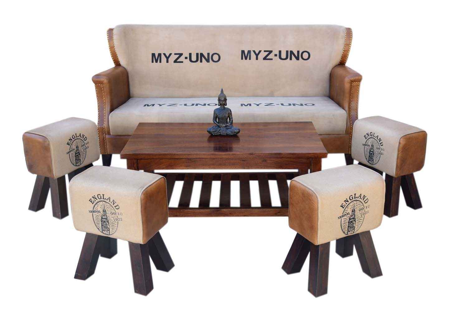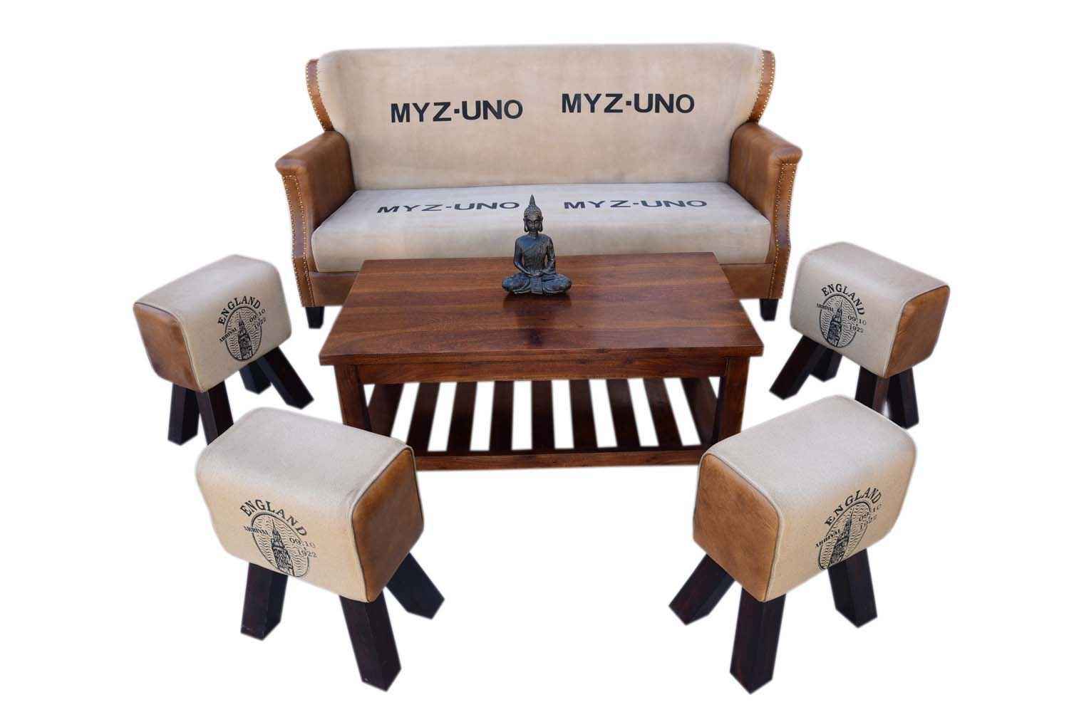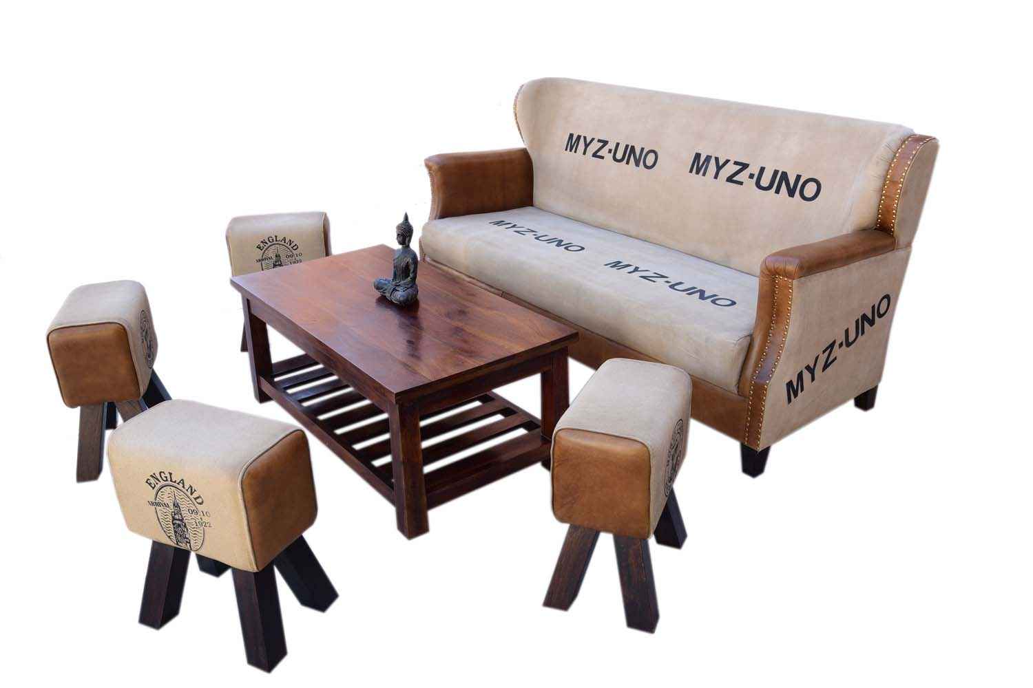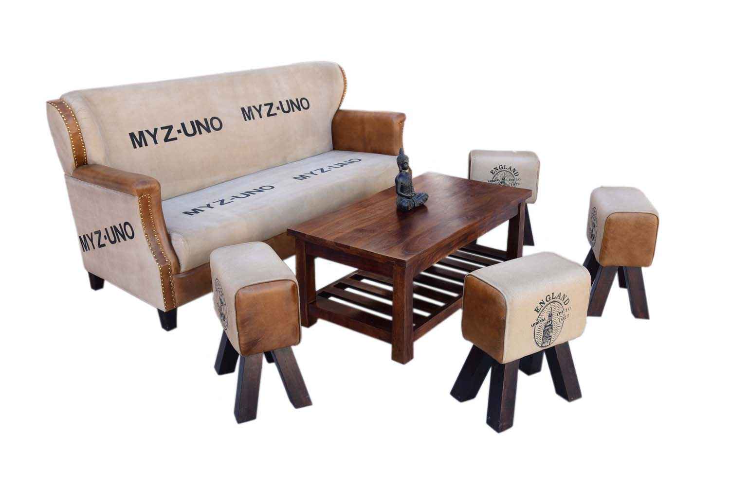 Mayur 2+1+1 sofa set with center table is made by sheesham wood with Walnut finish. we use cream color upholstery on sitting and back section. This is 1+1+2+1(coffee table) sitting sofa with coffee table.coffee table is made by mango wood with walnut finish.