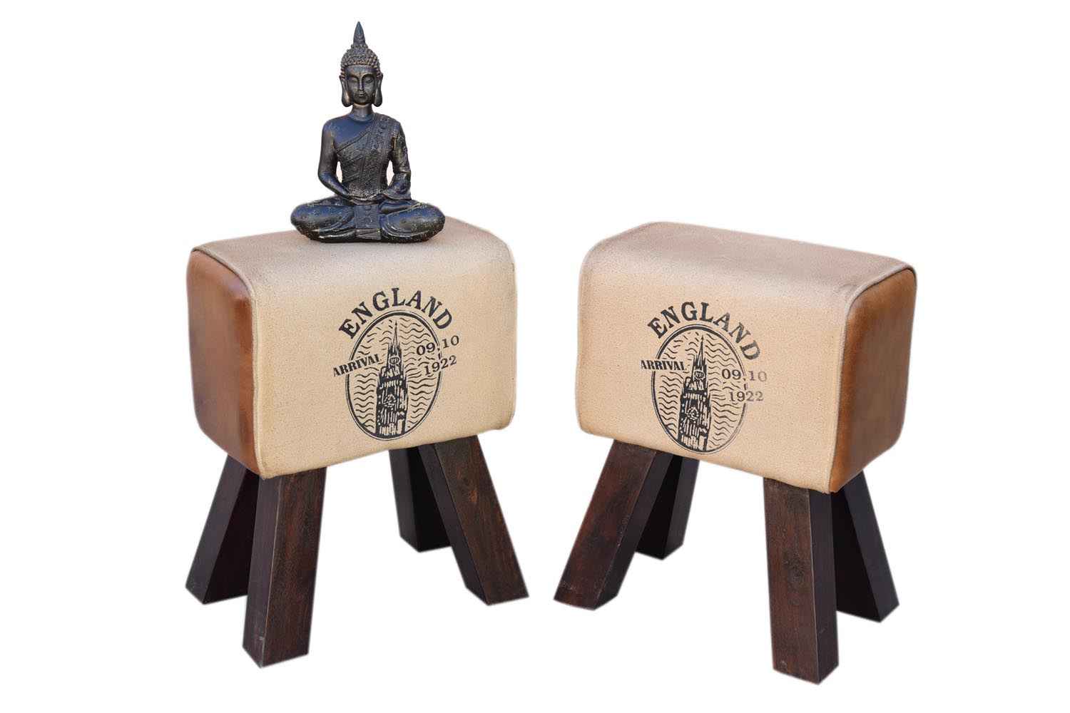Godfredo cotton upholstery stool is made by mango wood & cotton fabric upholstory with walnut finish. We used upholstery (leather and cotton cloth) in seating section attached to mango legs. It is light weighted and easy to move.