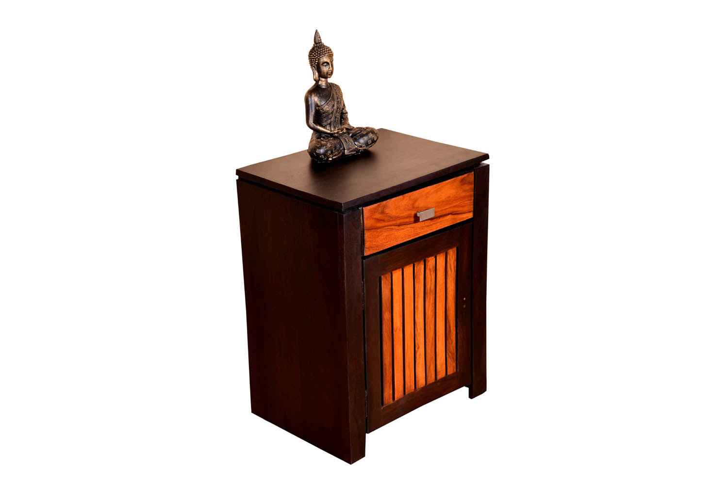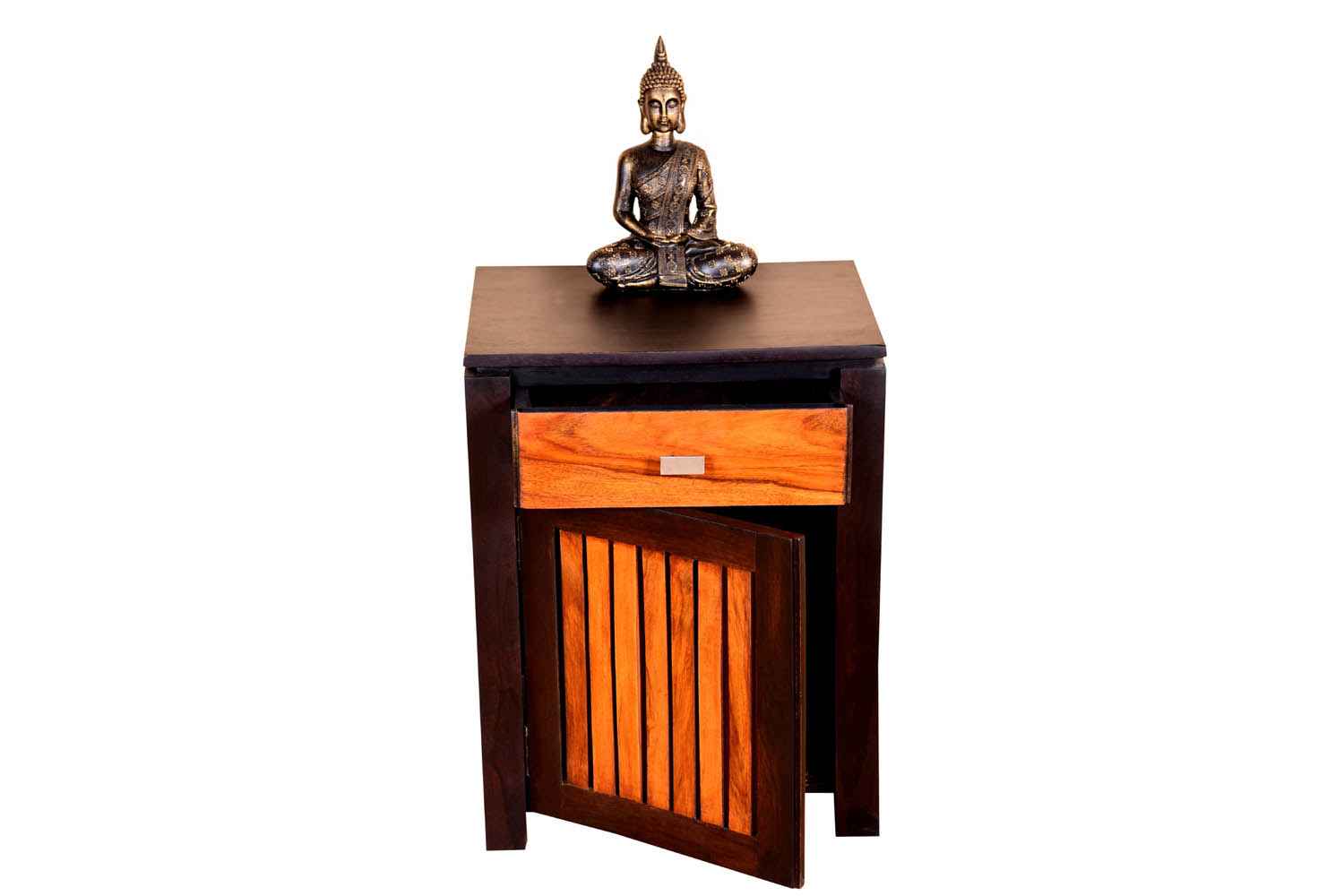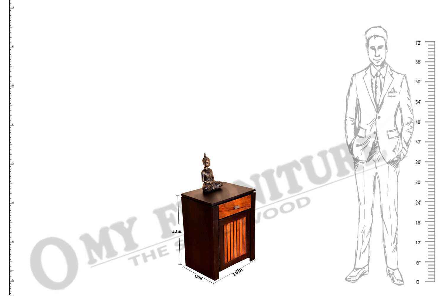 Marlboro Bedside is made by Sheesham (Rosewood) with Mahogany finish.It is one door bedside. Between top and side body frame, there is a gape and top is not completely attached with sides of the frame that gives an amazing look. In inner side there is a shelf which divide it into two parts section. For making of this wooden bedside we used magnet in inner section to give completely grip to the door. Door contain knob to open it easily. Sheesham wood furniture always count in good quality & reliable furniture.You can buy Sheesham wood furniture online from O my furniture.