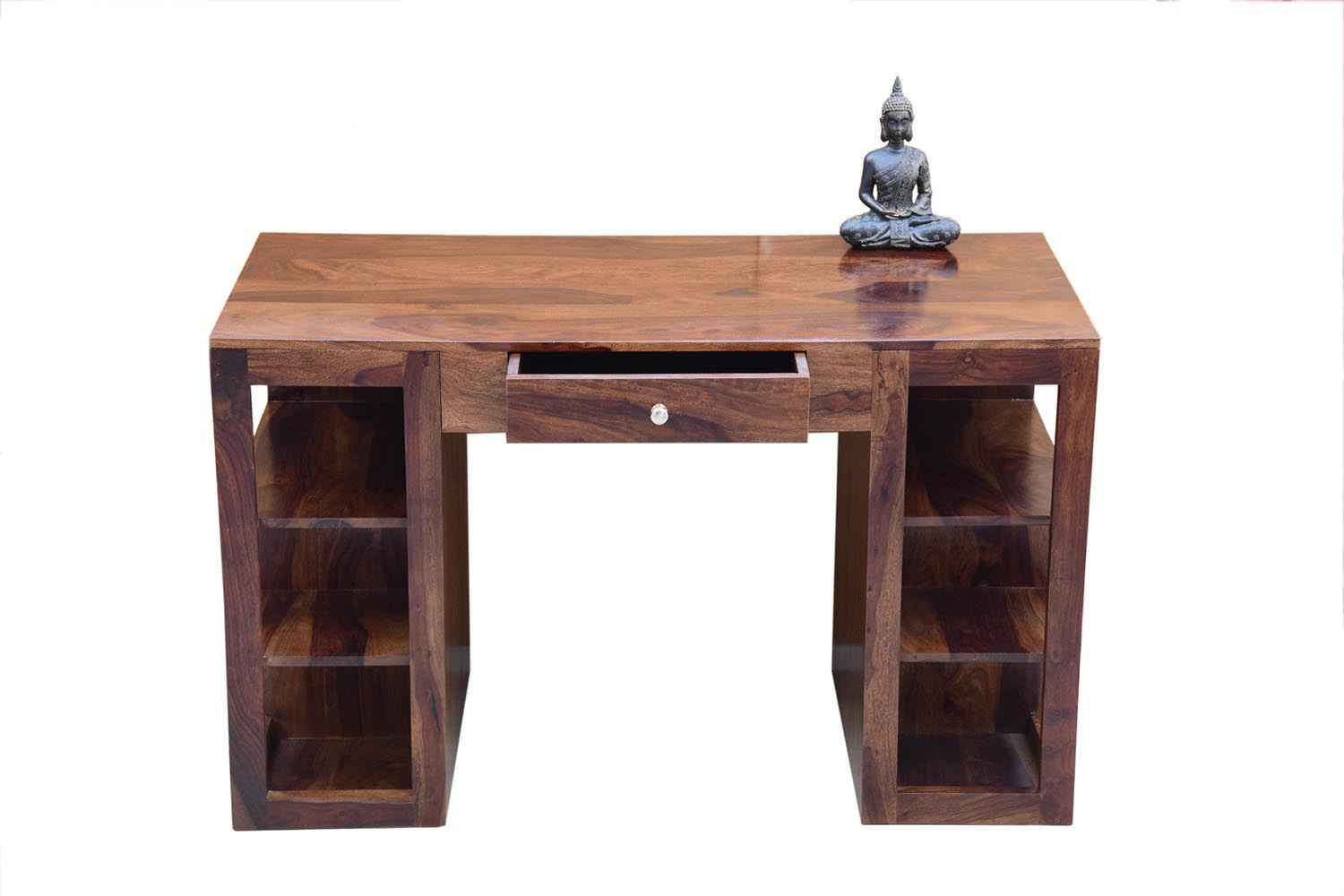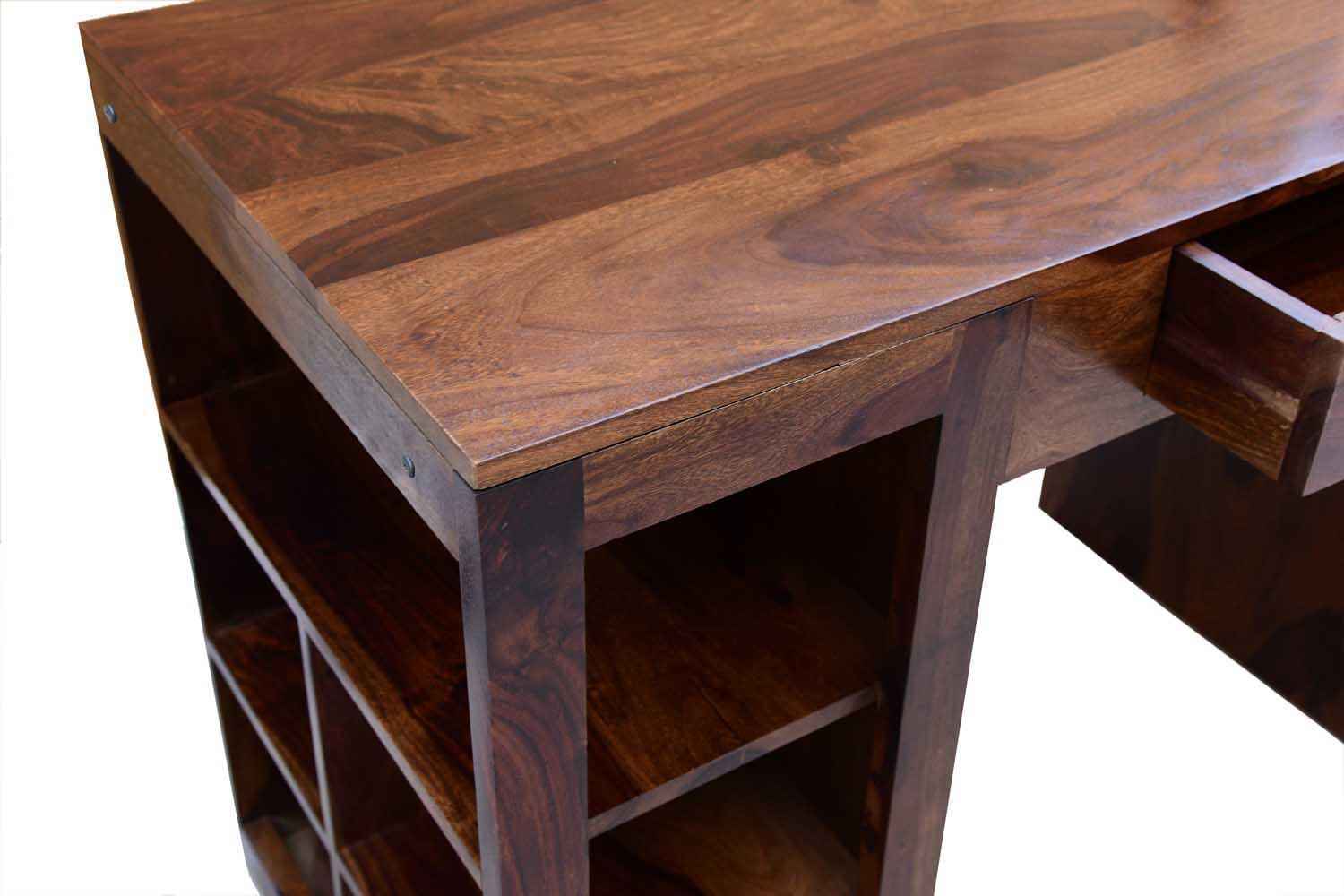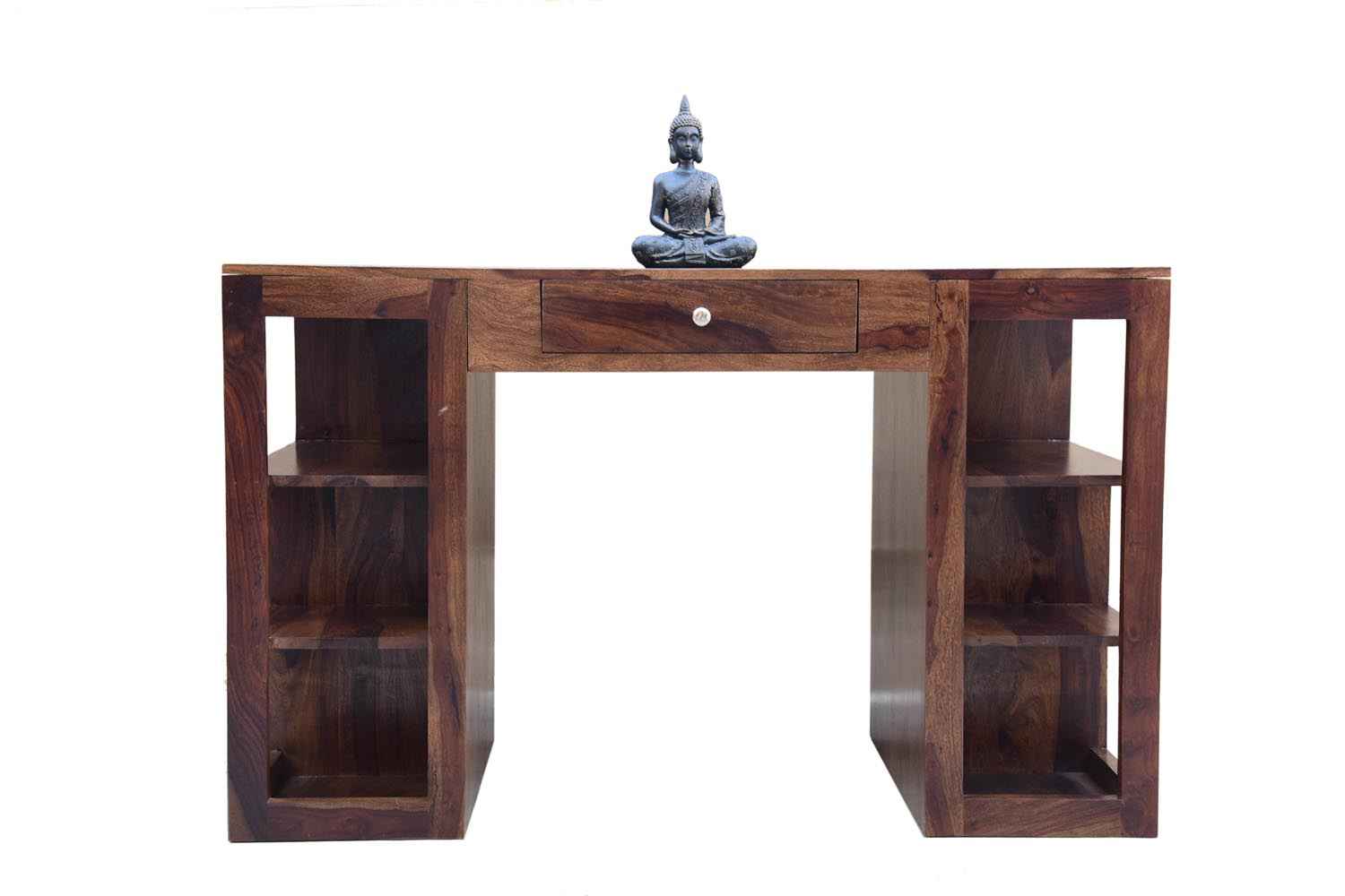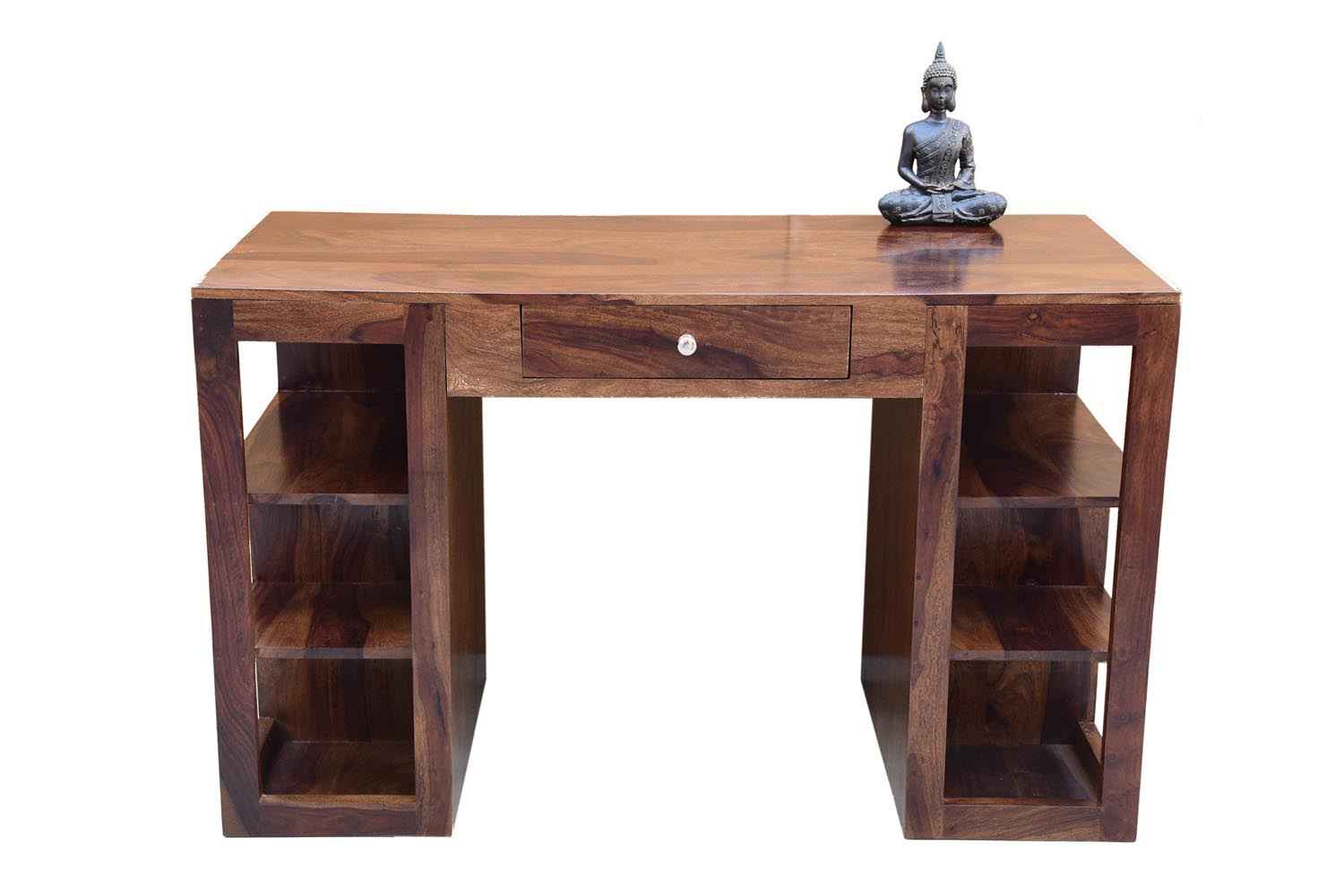 Neoteric console cum study table with bottom self is made by Sheesham (Rosewood) with teak finish. That is one drawer study table. Study table contains bottom shelf for store extra article.As we know Sheesham wood furniture or solid wood furniture have good strength and this type of wooden furniture always count in good quality furniture. You can buy Solid wood furniture online by O My Furniture.