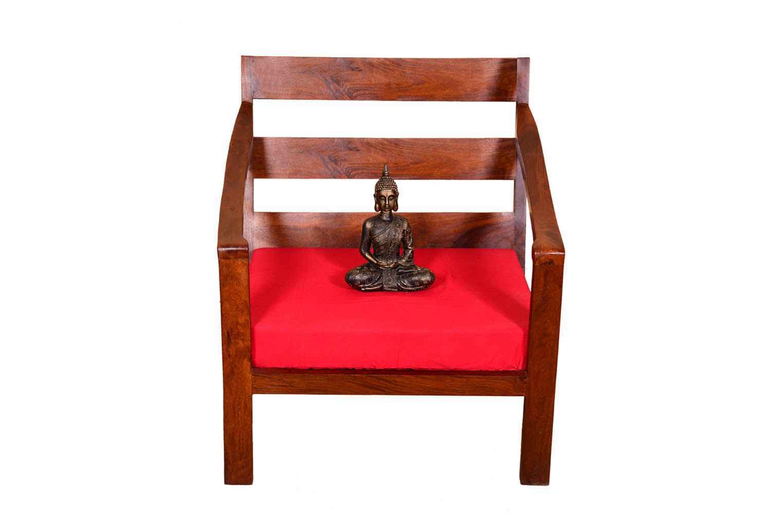 Twister sofa one seater is made by Sheesham (Rosewood)  with walnut finish. We use cream color upholstery on sitting section and back is without upholstery. This sofa not having hand rest. Sheesham wood furniture product always count as a best quality product to buy. You can buy Solid wood furniture online from O my furniture.