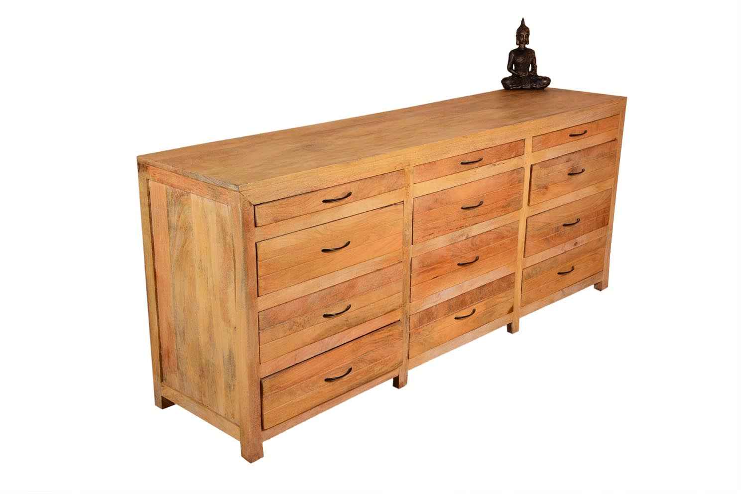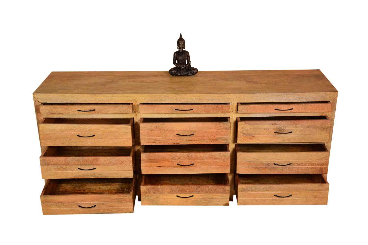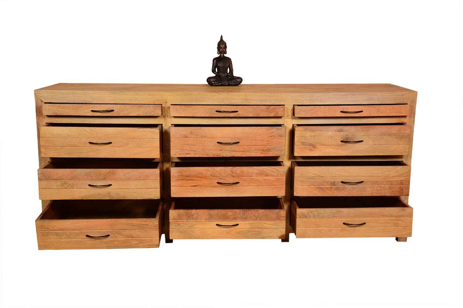 Hoary design rustic finish chest of drawer is made by Mango wood with rustic rough finish.This is twelve drawer set chest of drawer.All the drawers are arranged in four horizontal row and each row has three drawer in sequence. First row drawer set is marginally smaller from the other rows drawer set.You can buy best quality bedroom furniture online from O my furniture.