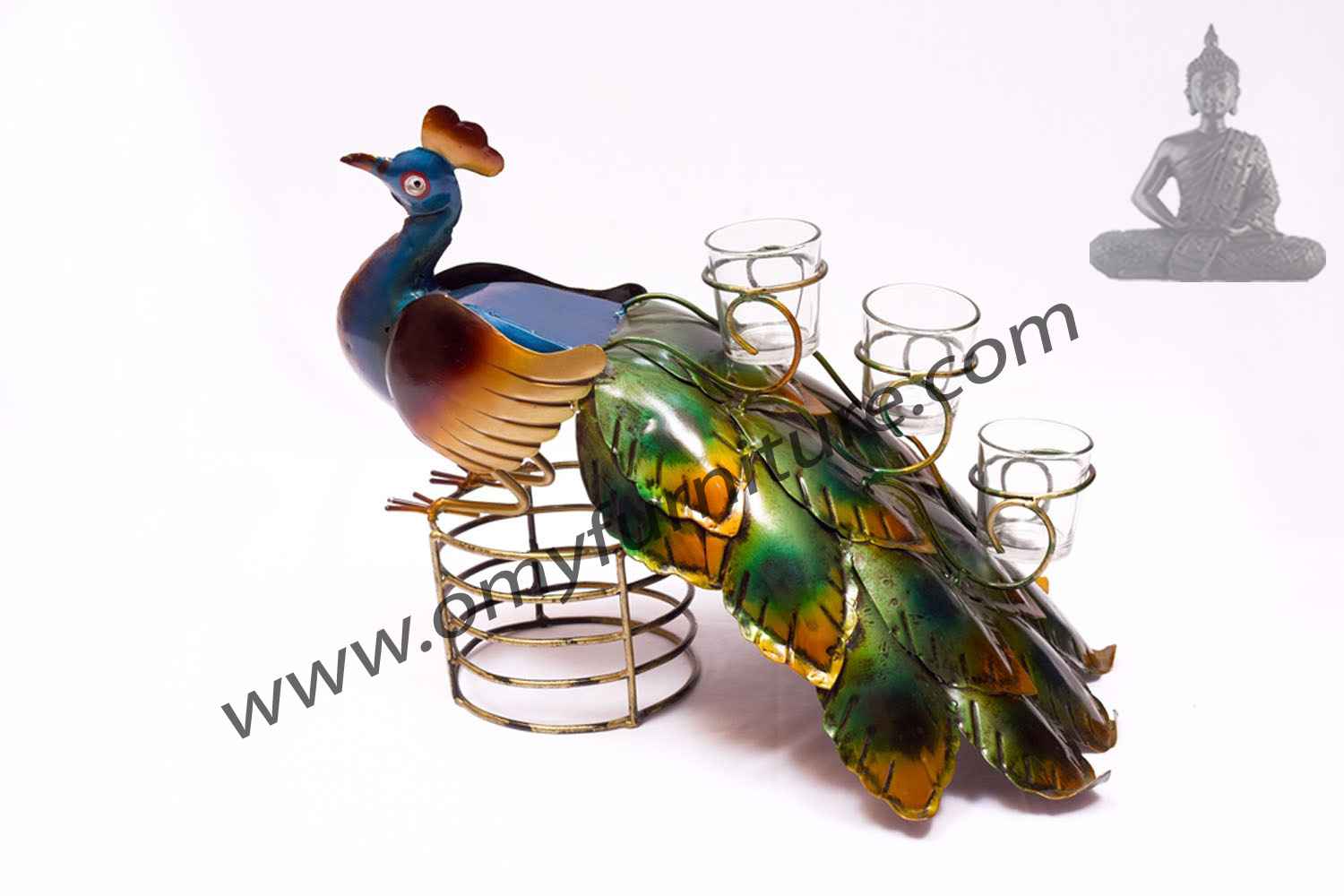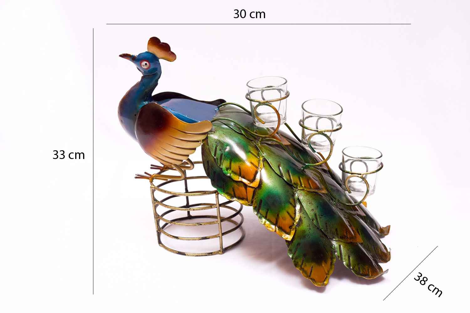 Designer peacock with glass candle holder