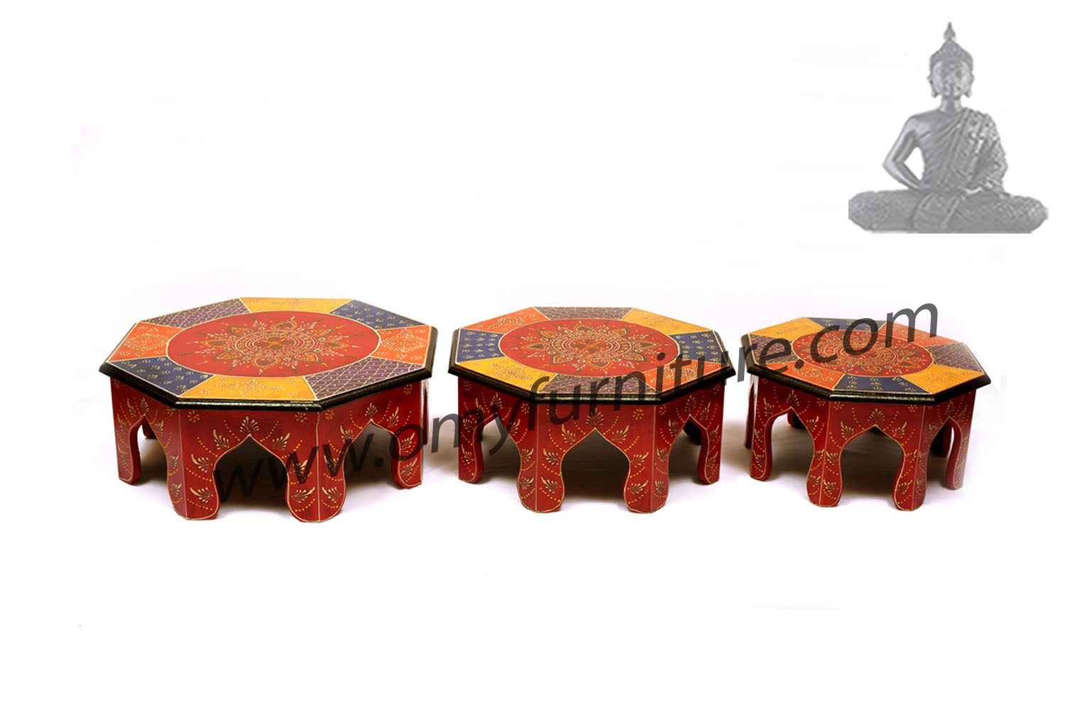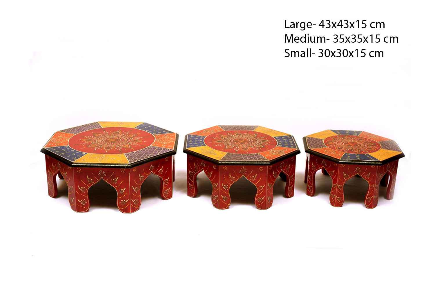 Designer Handpainted Wooden Bajot Chowki Set Of 3