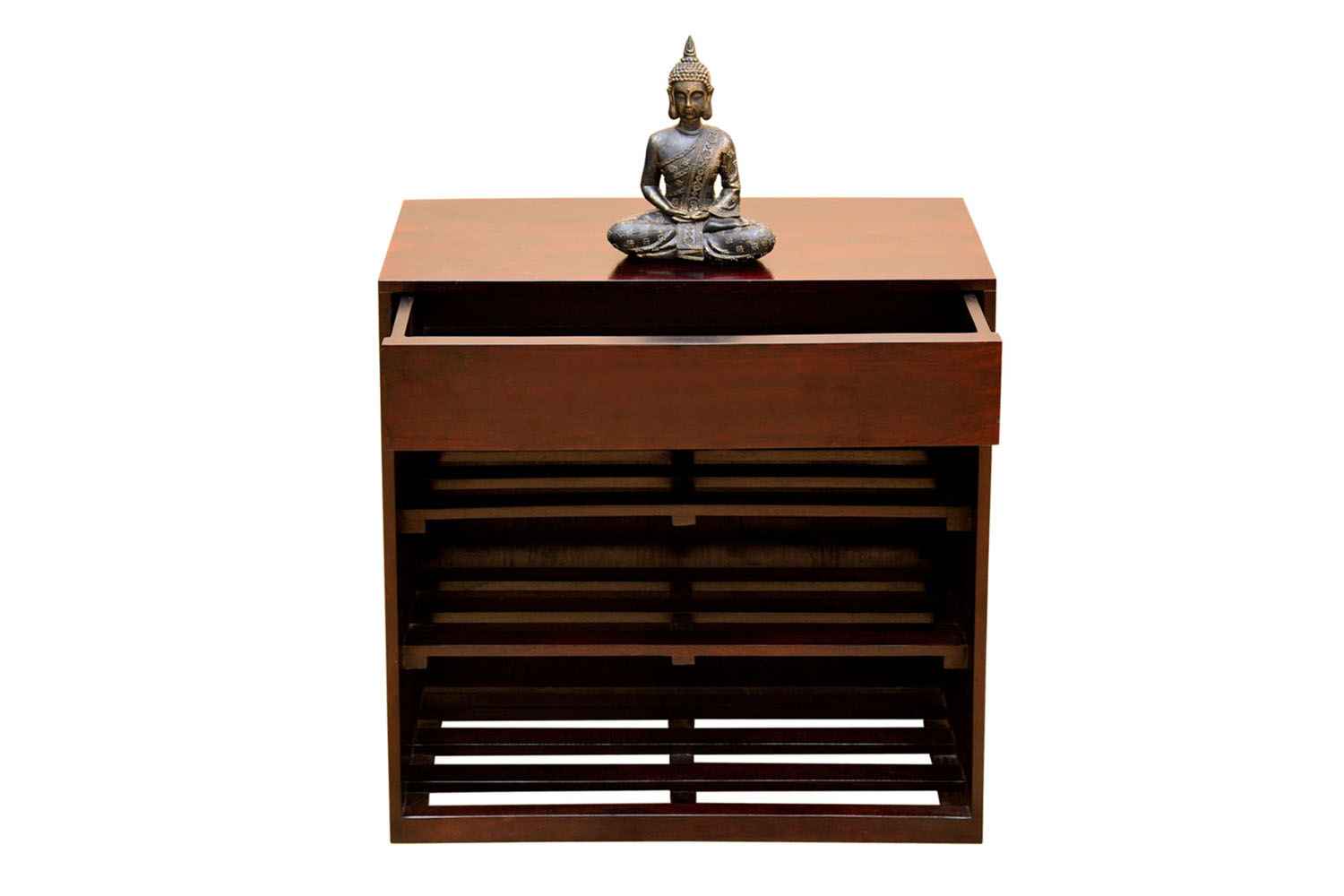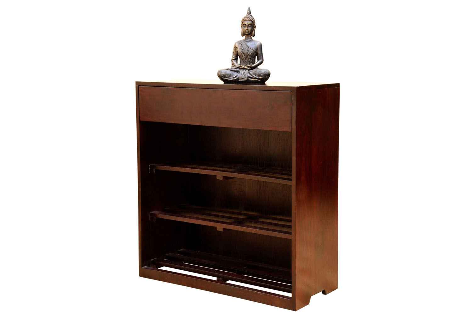 Dyna shoe rack is made by Sheesham wood(rosewood) with Teak finishing. This Wooden shoe rack has three shoe compartments with one drawer to keep extra articles. We have made group design with unique look which make it beautiful product for your interior