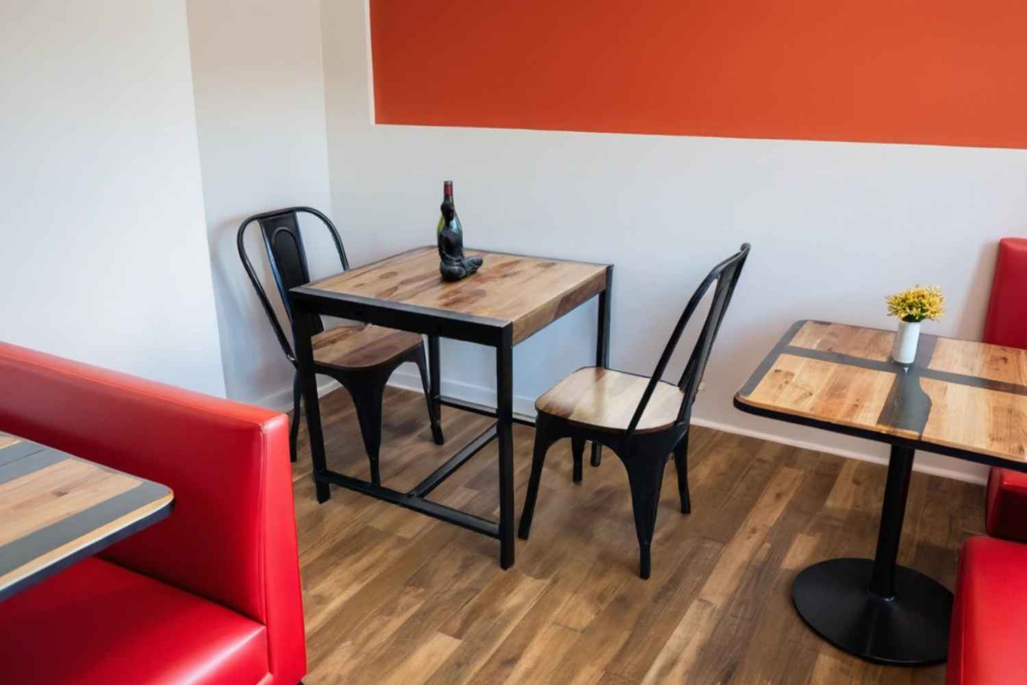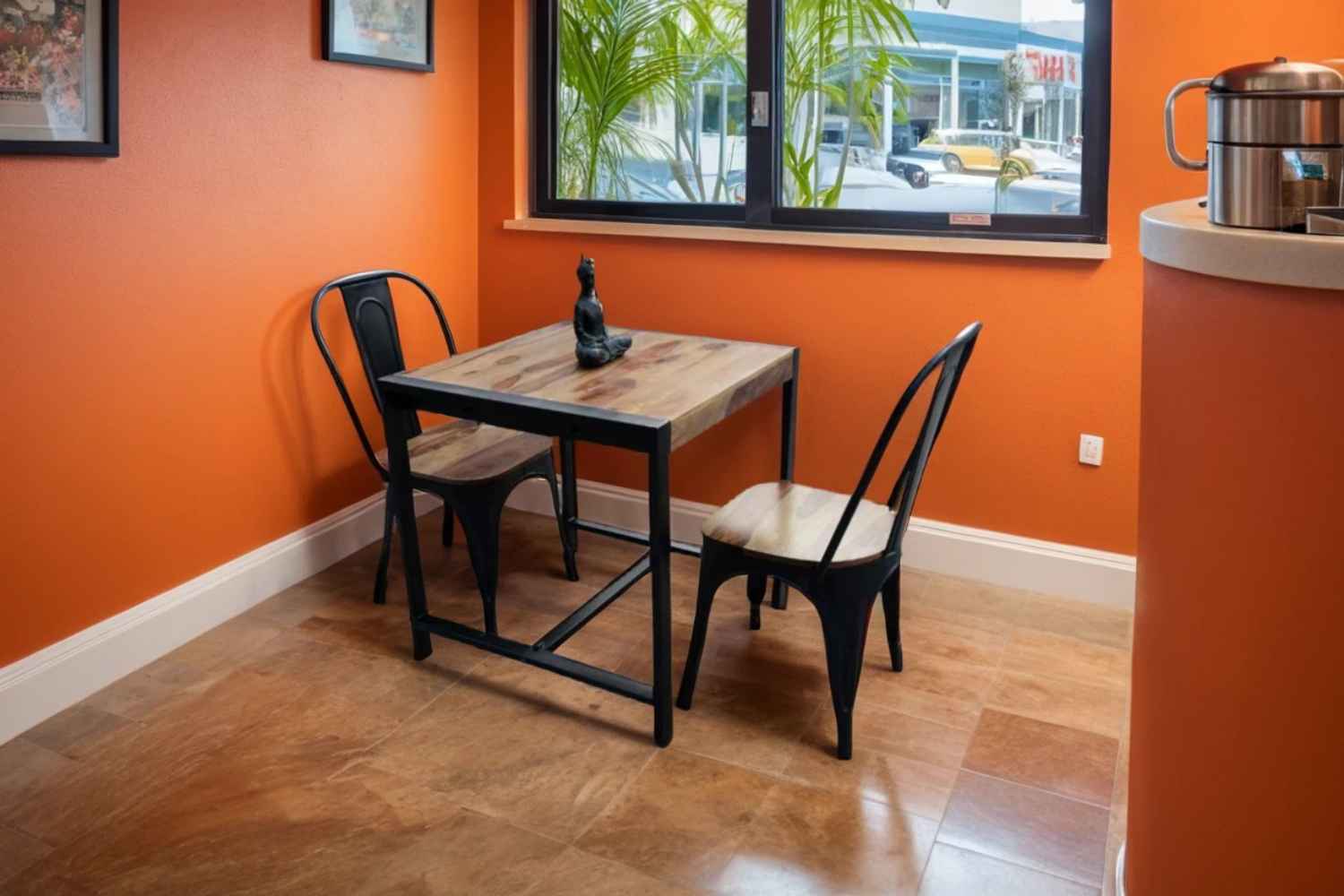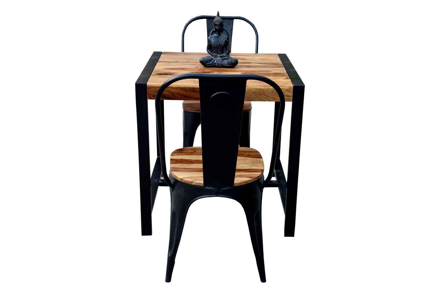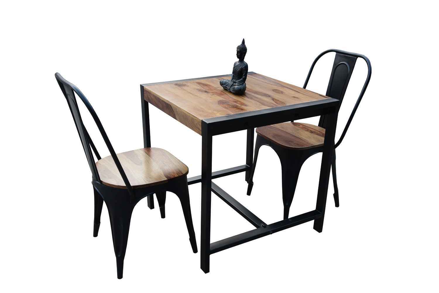 2 Seater Picco Small Dining Table With Molding Black Iron Chair Set