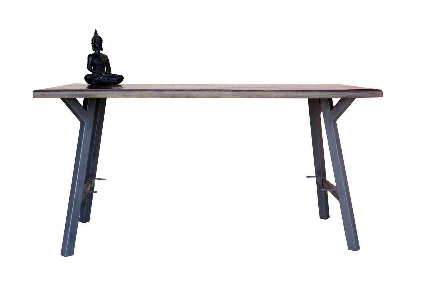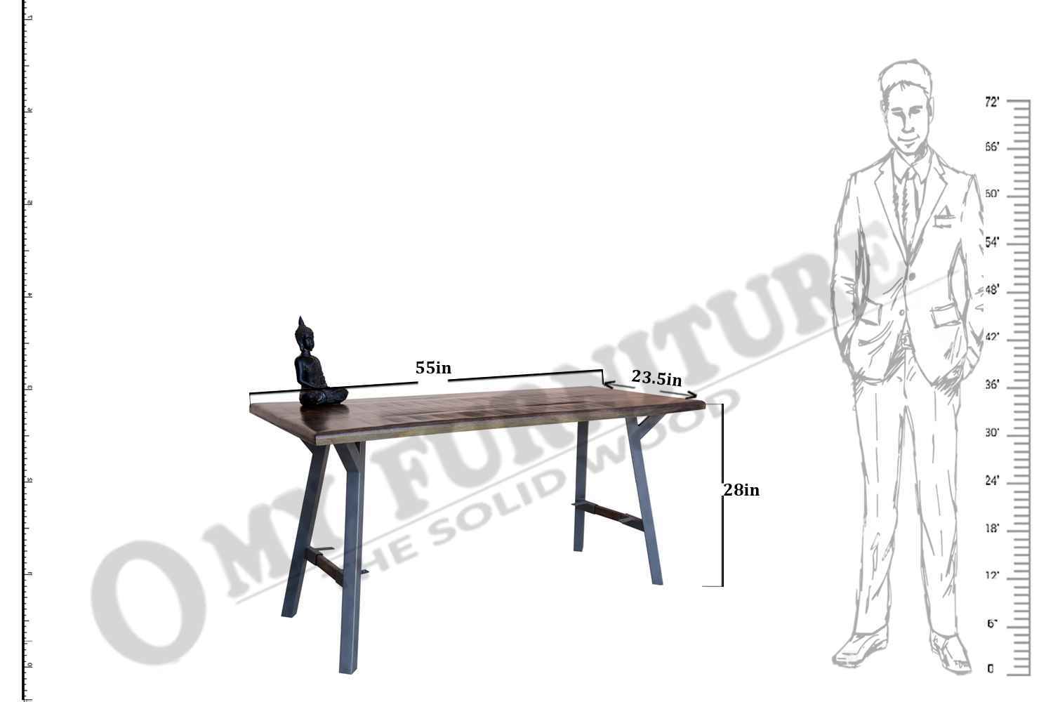 4 seater wrangle industrial dining table made by mango with with Iron. Mango wood top finish by Aara with Walnut Polish. This is 4 seater dining table used in home and restaurant. That is multipurpose Dining Table you can also use in Outdoor.