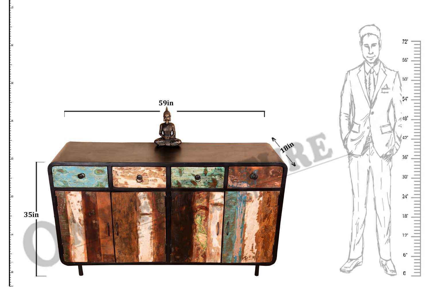 Reclaimed Urban Four Drawer Two Door Cabinet
