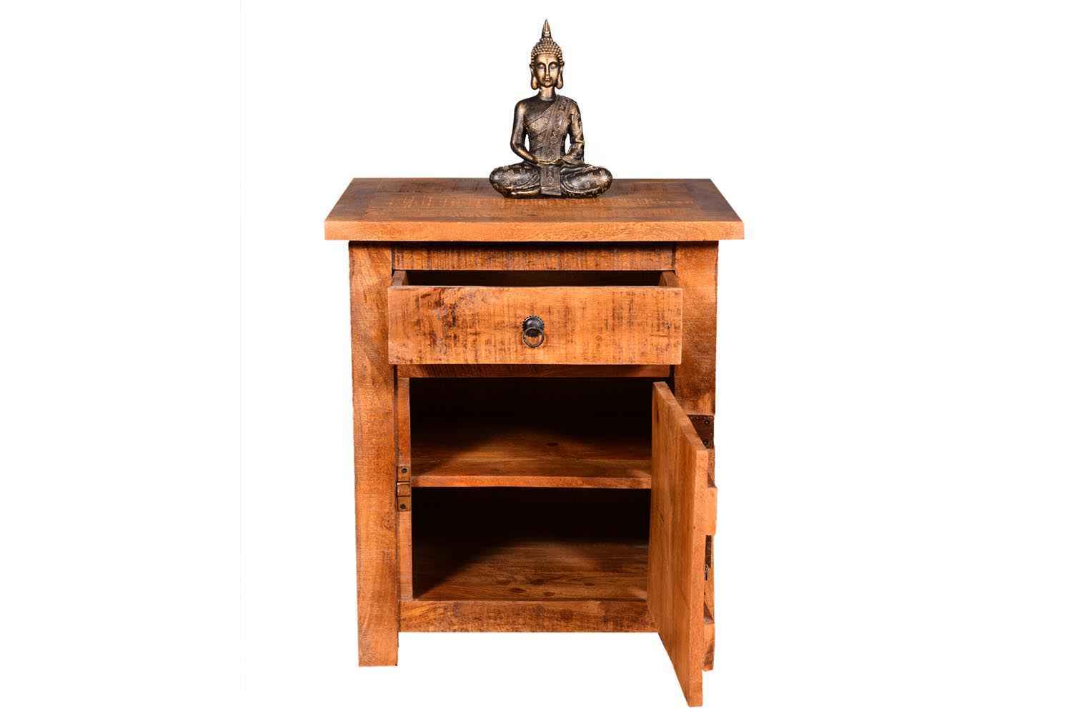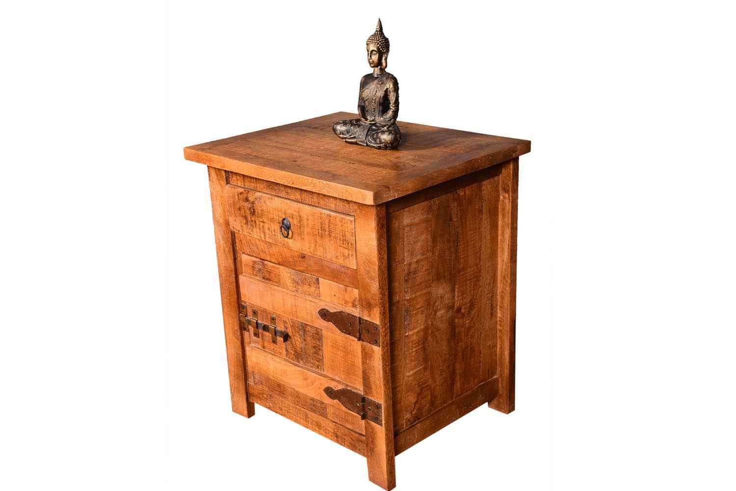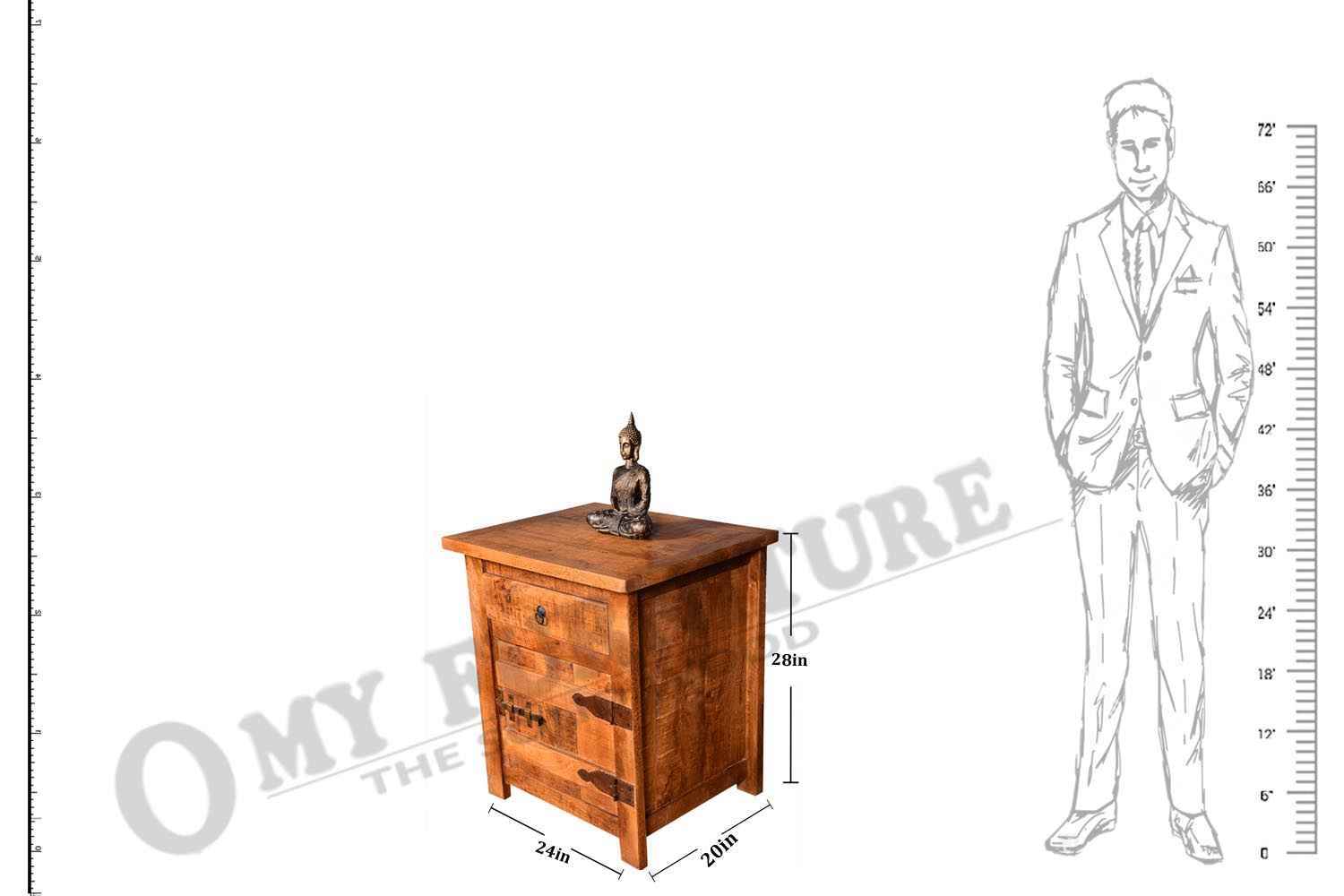 Refriger one drawer and one door bedside is made by recycle wood with natural finish. It is one drawer and one door bedside. We have used stainless steel lock and other metal accessories. You can buy Solid wood furniture online from O my furniture.