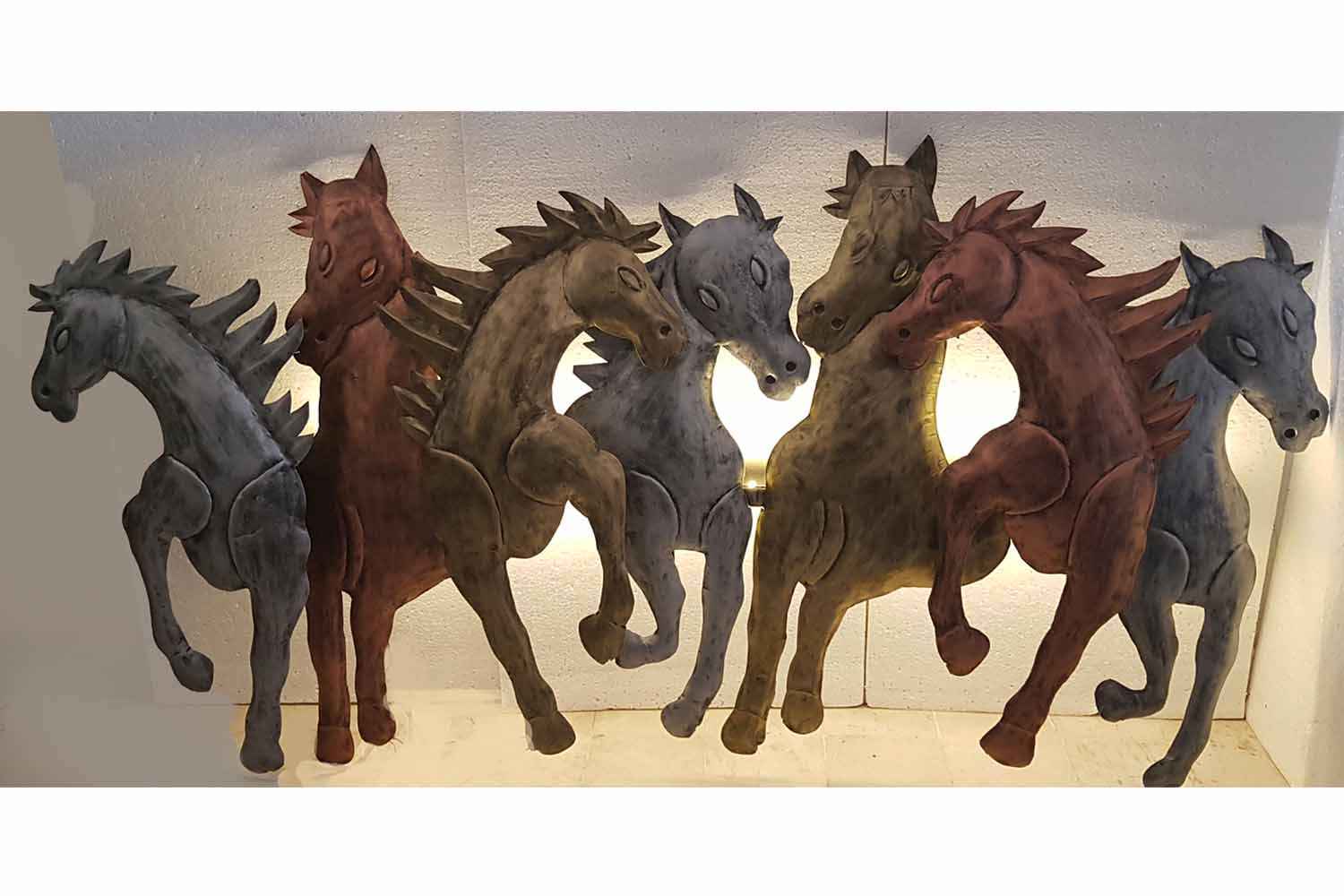 Iron horse panel with led is manufactured in iron and multiple colors which gives a beautiful vintage look. This home decor iron product is available in wall hanging functionality with LED lights in different size, shape and design. This iron decor item is uniquely designed with high quality. It consumes compact area but impact huge. The decoration product plays an important role in the home Interior and our correct choice will make home more beautiful. The O my furniture provides you best design and quality product to decor your home.