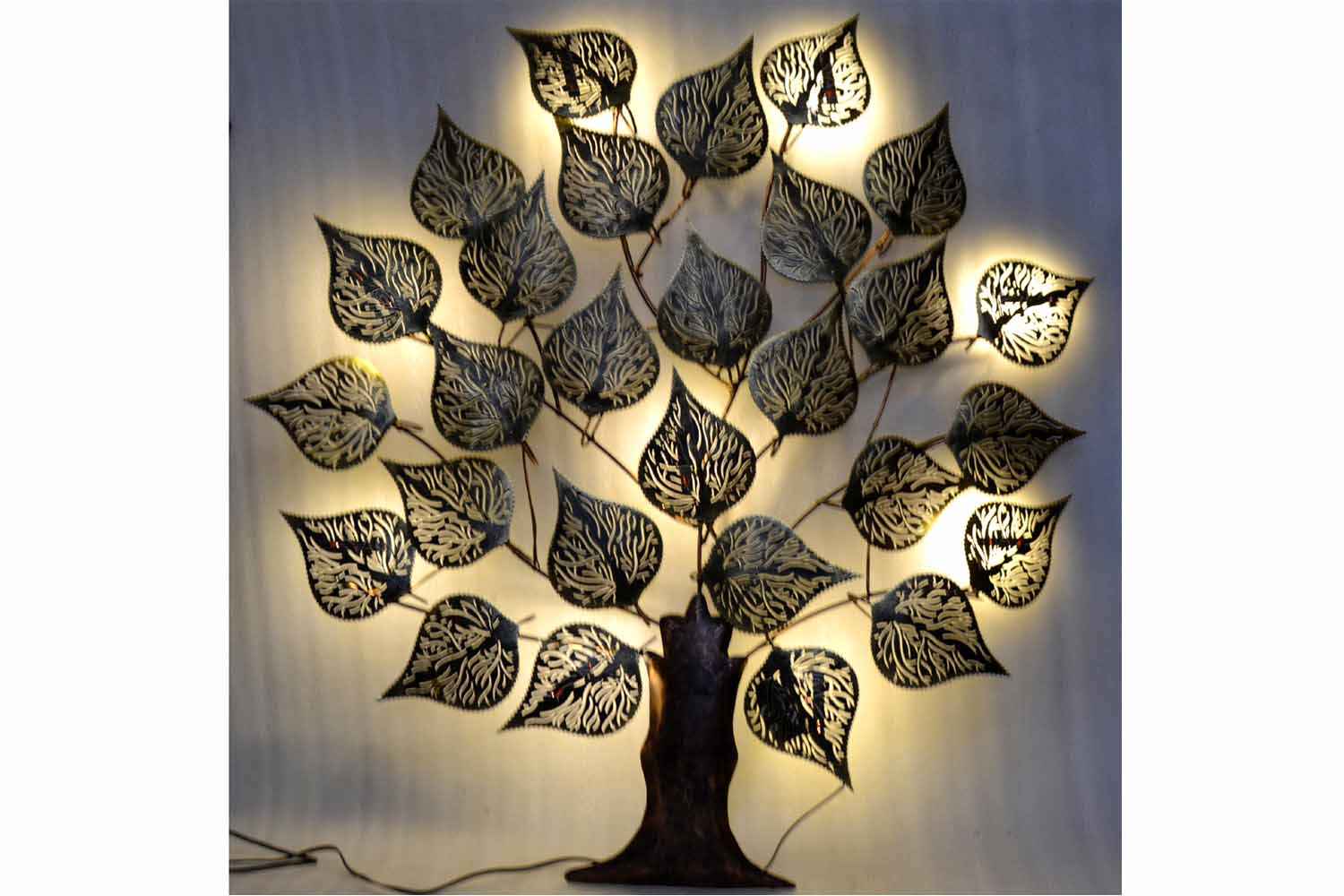 Iron Peepal Tree with Led is manufactured in iron and multiple colors which gives a beautiful vintage look. This home decor iron product is available in wall hanging functionality with LED lights in different size, shape and design. This iron decor item is uniquely designed with high quality. It consumes compact area but impact huge. The decoration product plays an important role in the home Interior and our correct choice will make home more beautiful. The O my furniture provides you best design and quality product to decor your home.