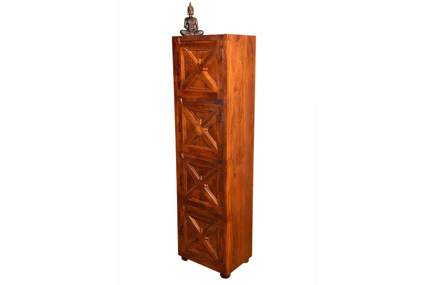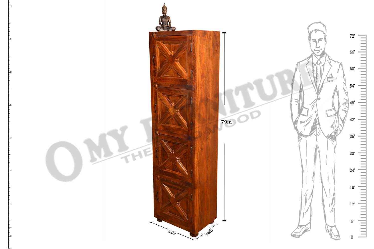 Shutter one Door wardrobe is made up of Mango wood with walnut finishing.This wooden furniture wardrobe contains Shutter pattern door and three shelf with four sections.It is used in living room, bedroom as well as wardrobe and storage.You can buy this beautiful wooden furniture wardrobe online from O my furniture.