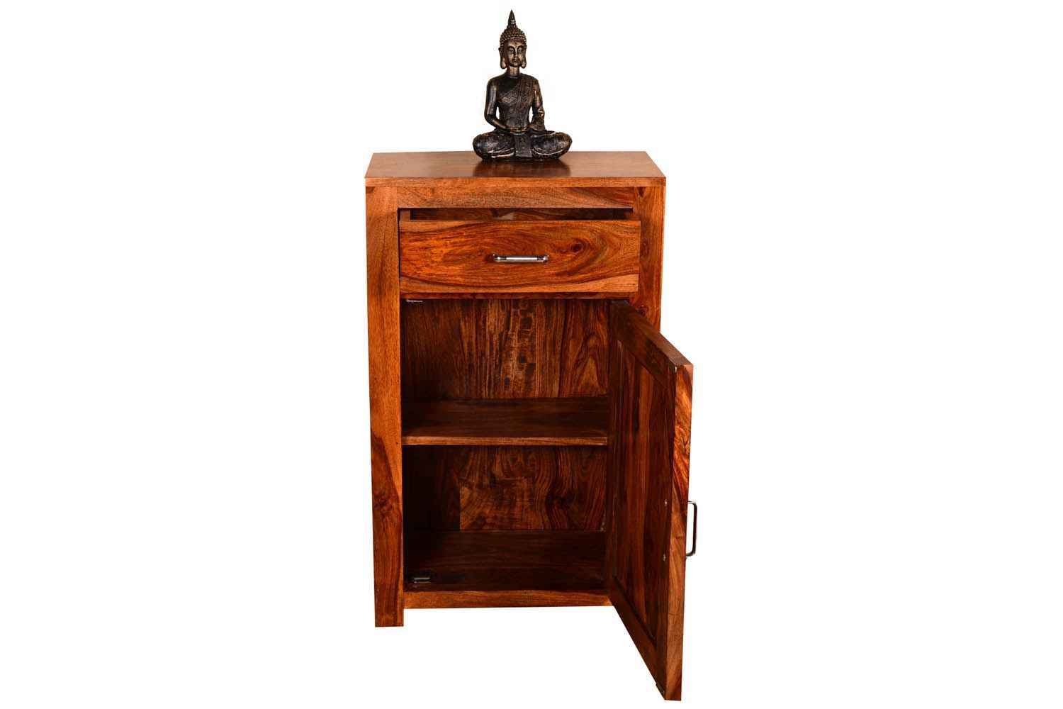 Chirmi Reclaimed one shelf wardrobe is made by Mango Wood with rustic antique finish.This is one door small almirah. We can use it for multipurpose. You can buy Solid wood furniture online from O my furniture.