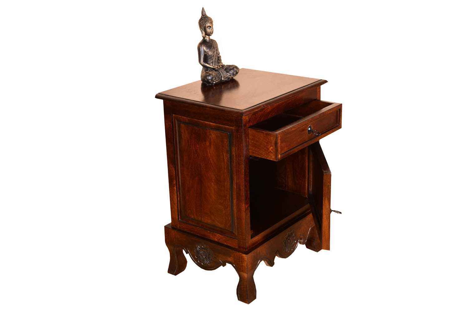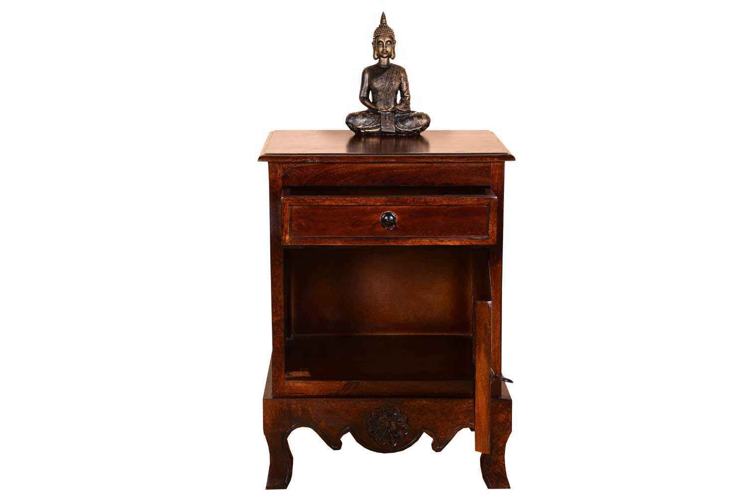 Jasmin one drawer small almirah is made by Mango wood with teak finish. This is one drawer and one door small almirah. This is small almirah bottom section designed give a heritage look and makes your interior more attractive.You can buy Solid wood furniture online from O my furniture.