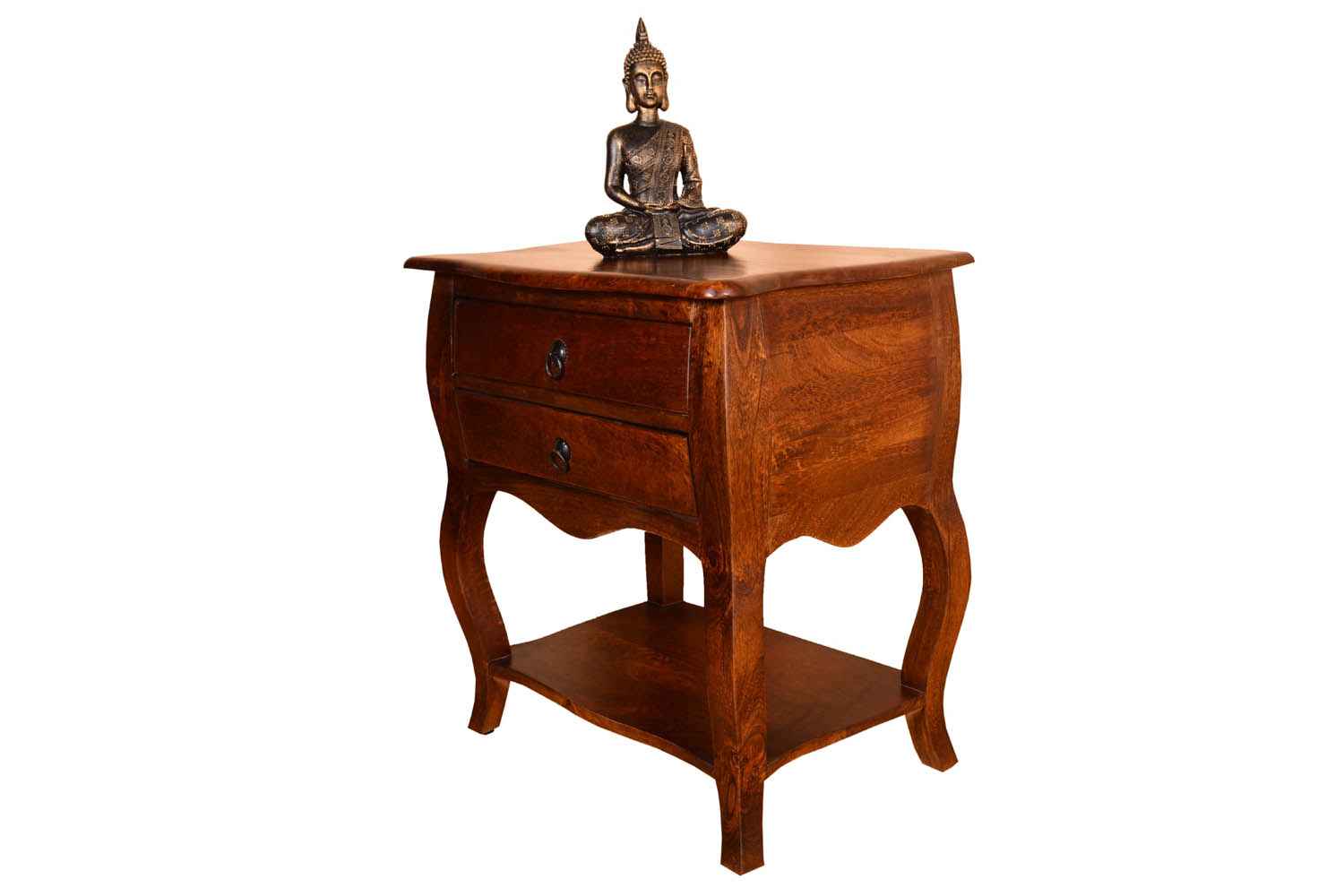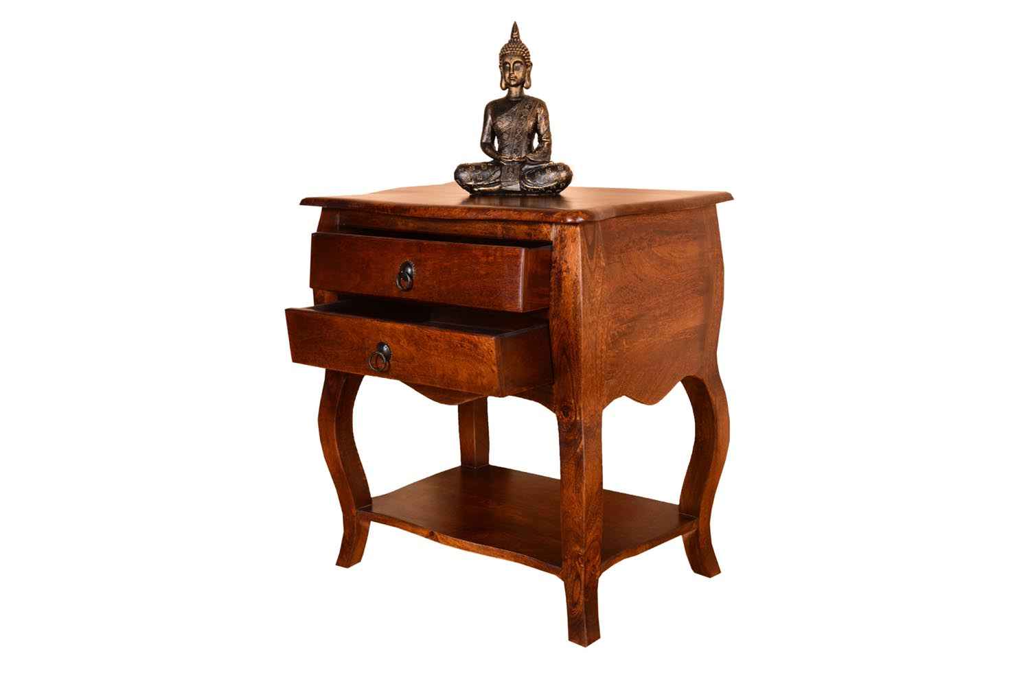 Rich Royal one drawer Bottom Shelf wooden Bedside is made by Mango wood with Dico finish. It is one drawer bottom shelf wooden bedside. Legs of this bedside is in curving shape that gives a beautiful look to this Solid wood bedside. Solid wood furniture always count in good quality and reliable furniture. You can buy Solid wood furniture online from O my furniture.