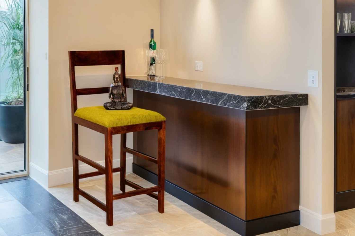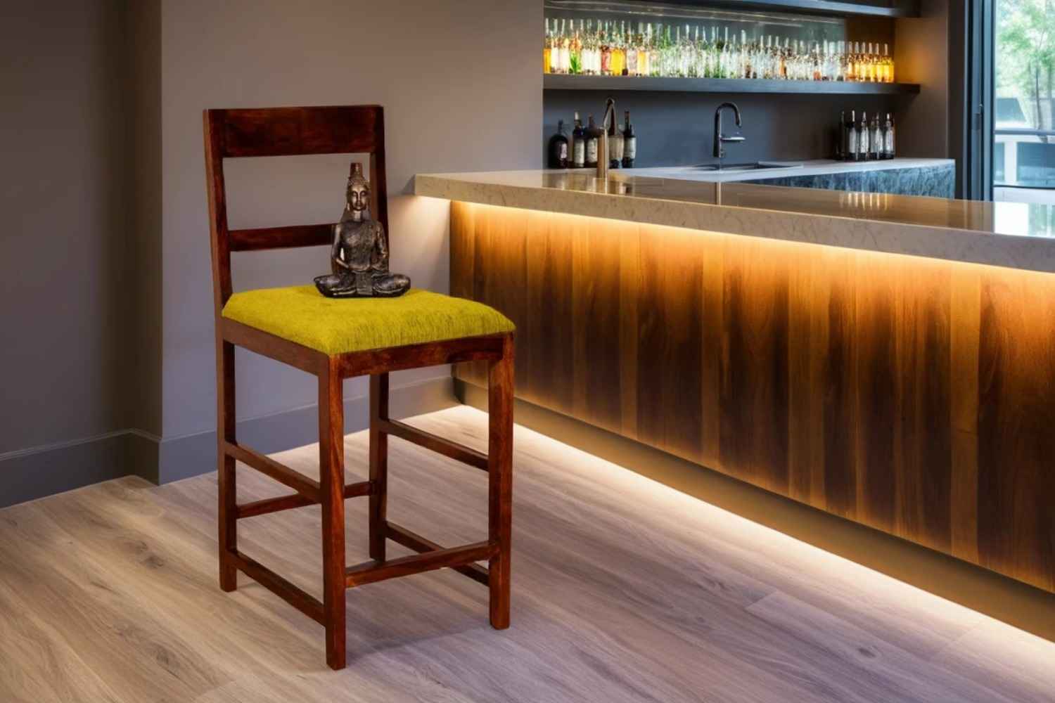 kingly wine bar chair is made by Sheesham (Rosewood) with walnut finishing. It is the best wooden chair for our bar concepts.It is long height seating bar chair with strips shape and wing design at the back portion of the bar chair.It is an heavy and stable Sheesham wood bar chair.You can buy this Sheesham wood furniture online from O my furniture.