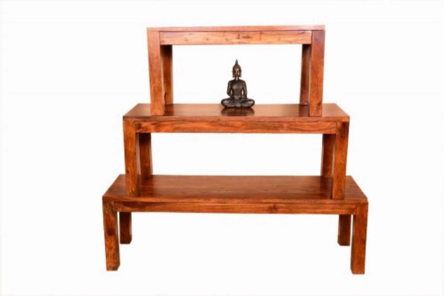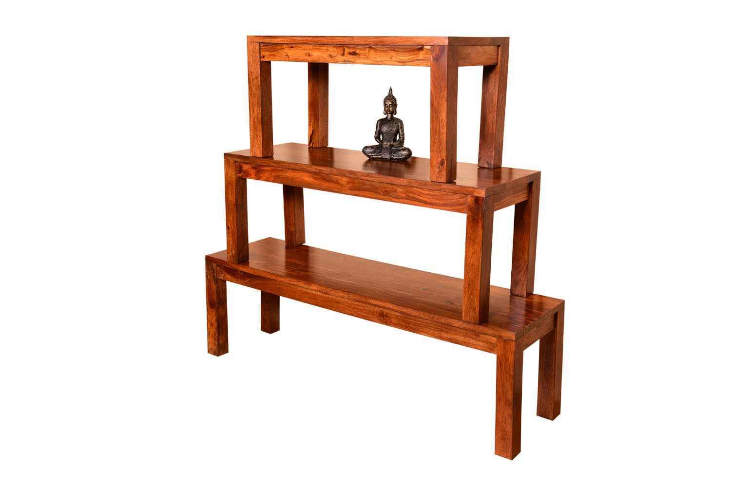Dolly teak finish bench is a set of three bench product. It is made up of Sheesham (Rosewood) with teak finishing. Simple design has been followed in the making of this wooden bench. All the benches are equal in shape & design but their sizes are different. It is an stable and classic wooden bench design. Sheesham wooden furniture product always count as a best quality product to buy. You can buy best quality living room furniture online through O my furniture.