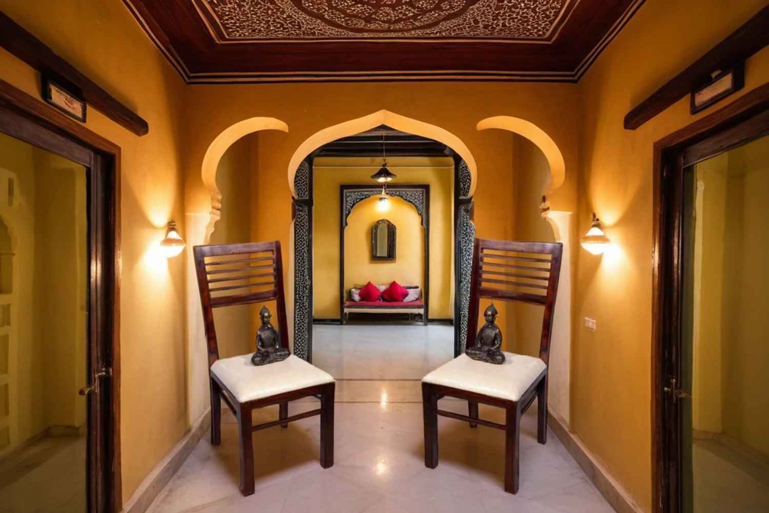 Pair of Garniture patch work chair is a very lovely chair for your home and restaurant.It is made by Sheesham (Rosewood) upholstery mogra with walnut finish and good strength cushion giving a best comfort.It is very antique design.You can buy best quality living room furniture online from O my furniture. .