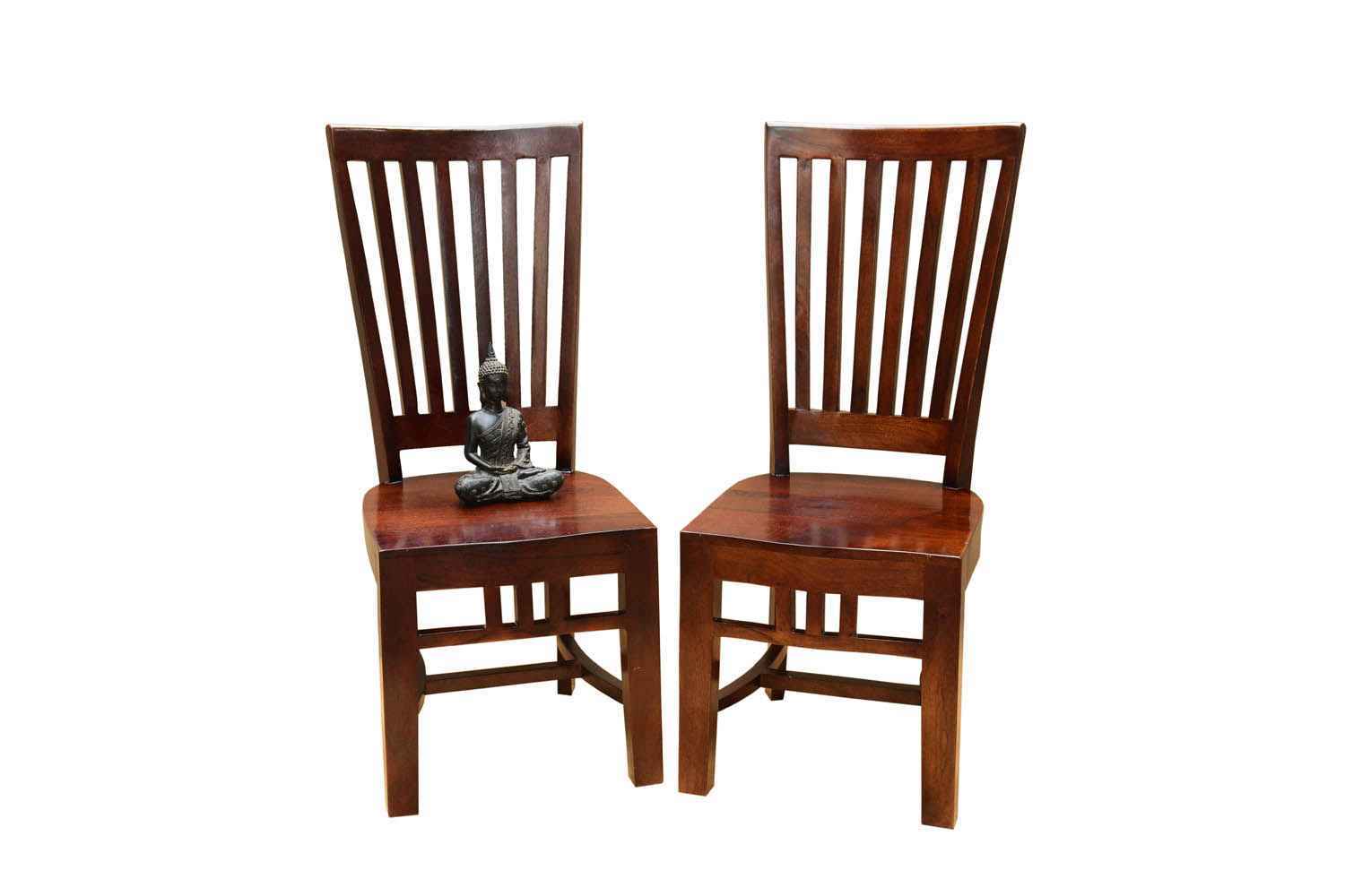 Set of Hazzle mango wood long chair made by mango wood with walnut finish. that is long highs wooden chair.back are design with strips.
