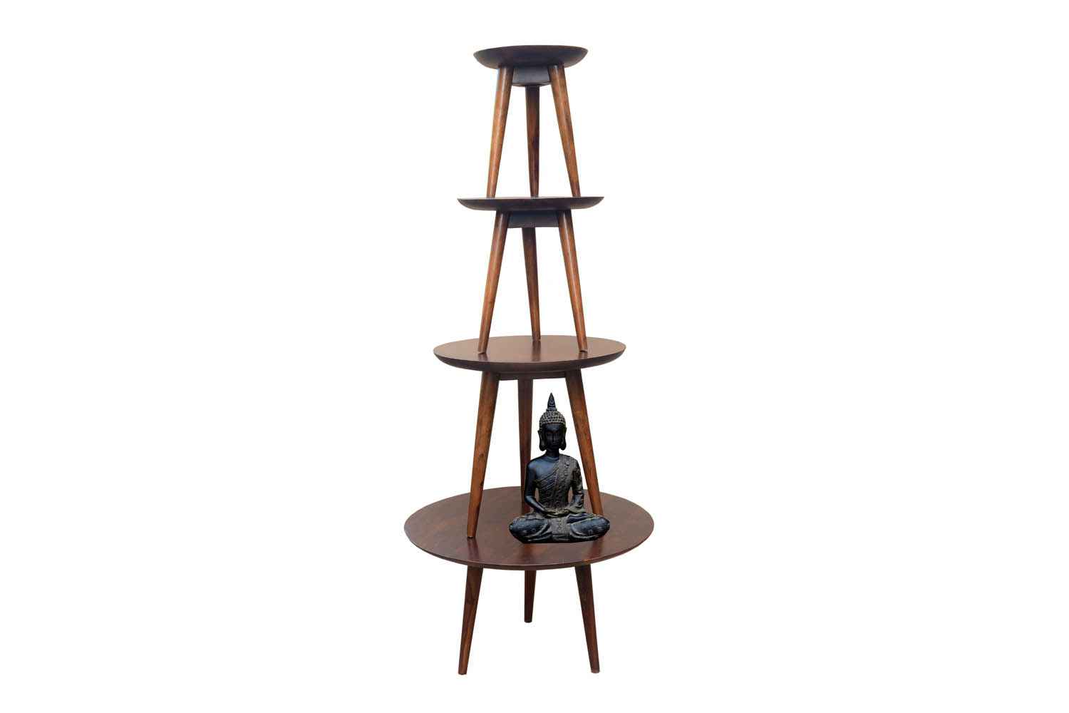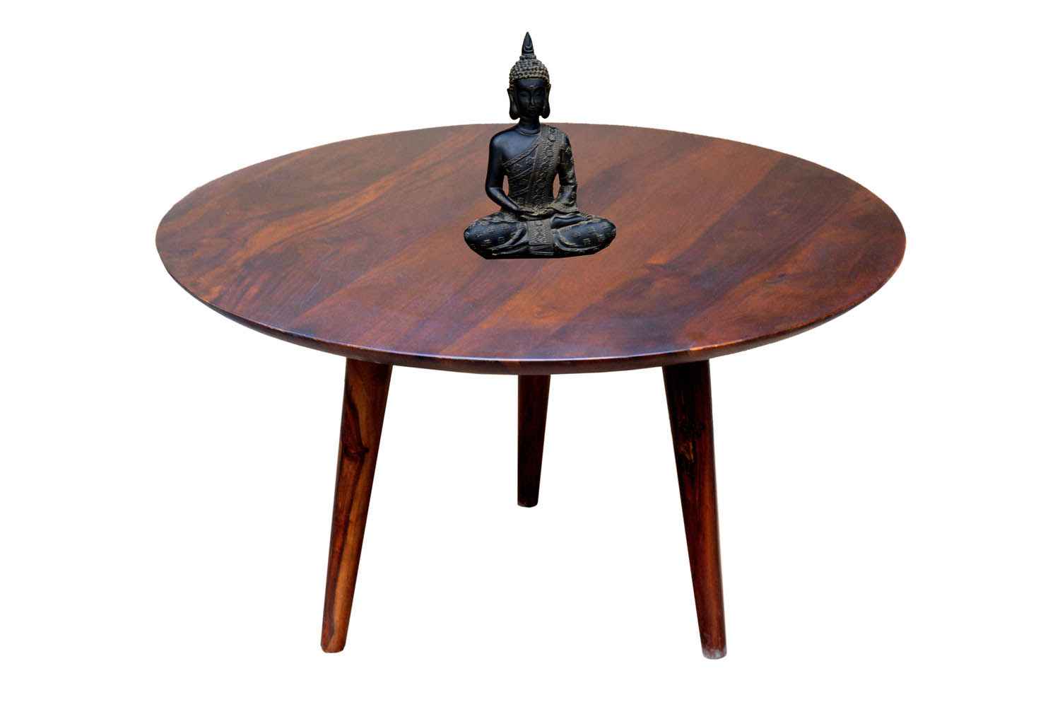 Turban round leg coffee table made by Mango wood with teak finish.It is light weight and easy to move.It is round cone shape legs engaged with top in triangle frame shape.It is round shape coffee table.O my furniture a complete Solid wood furniture stores help to increase your living room and bedroom decorum.