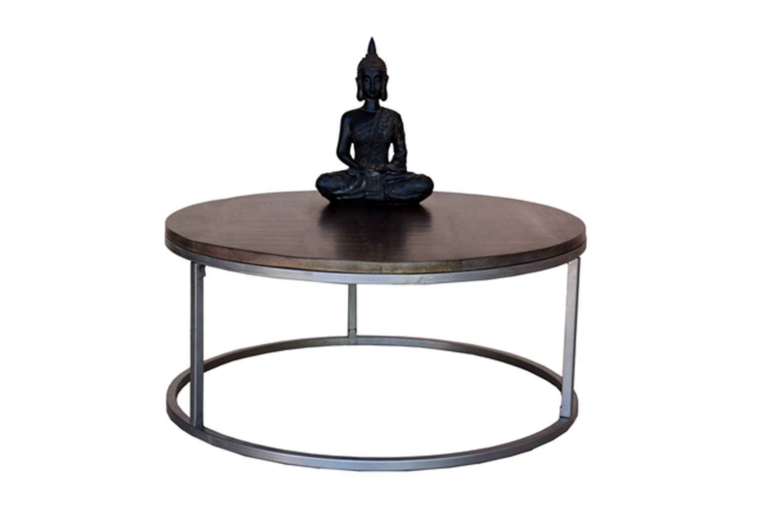 Spherical iron coffee table made by mango wood in walnut finishing with powder coated iron base It is in round shape with light weight you can shift easily in your home. Aara finishing on wood make this coffee table look more beautiful for your interior.