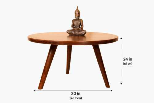 Turban round leg coffee table made by Mango wood with teak finish.It is light weight and easy to move.It is round cone shape legs engaged with top in triangle frame shape.It is round shape coffee table.O my furniture a complete Solid wood furniture stores help to increase your living room and bedroom decorum.