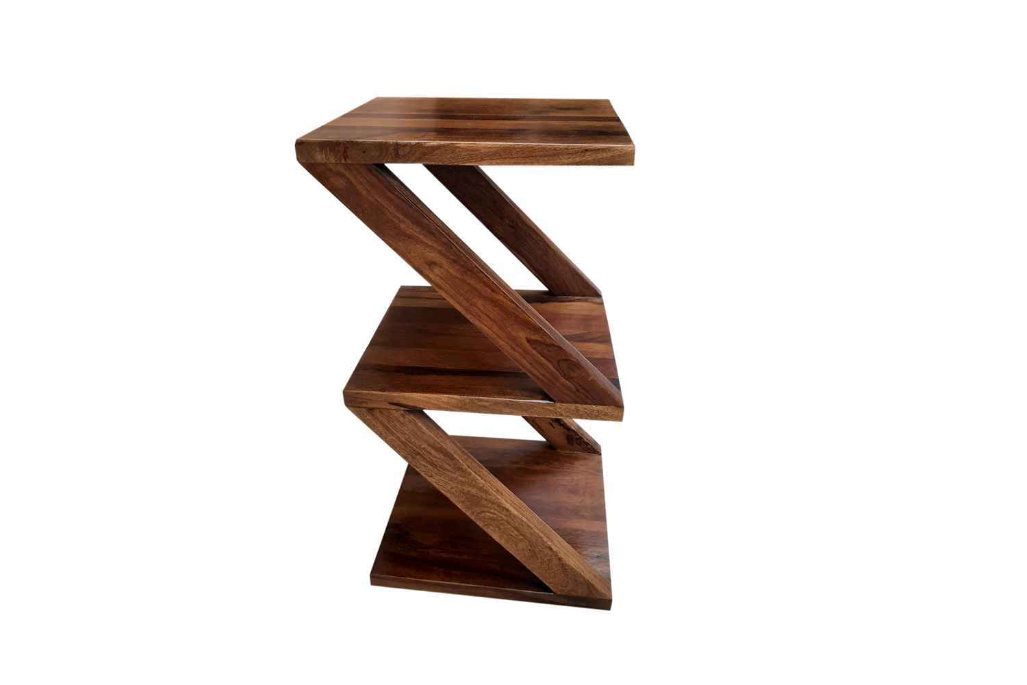 Dimora  3 shelf zigzag side table made by sheesham (Rosewood)  with teak finish. This is 3 shelf side table for bedroom and living room. You can also use it for small book rack. O my furniture always provides you high quality and sturdy all types of vintage and modern furniture product according to your needs that make your home beautiful. You can purchase furniture online from O my furniture.