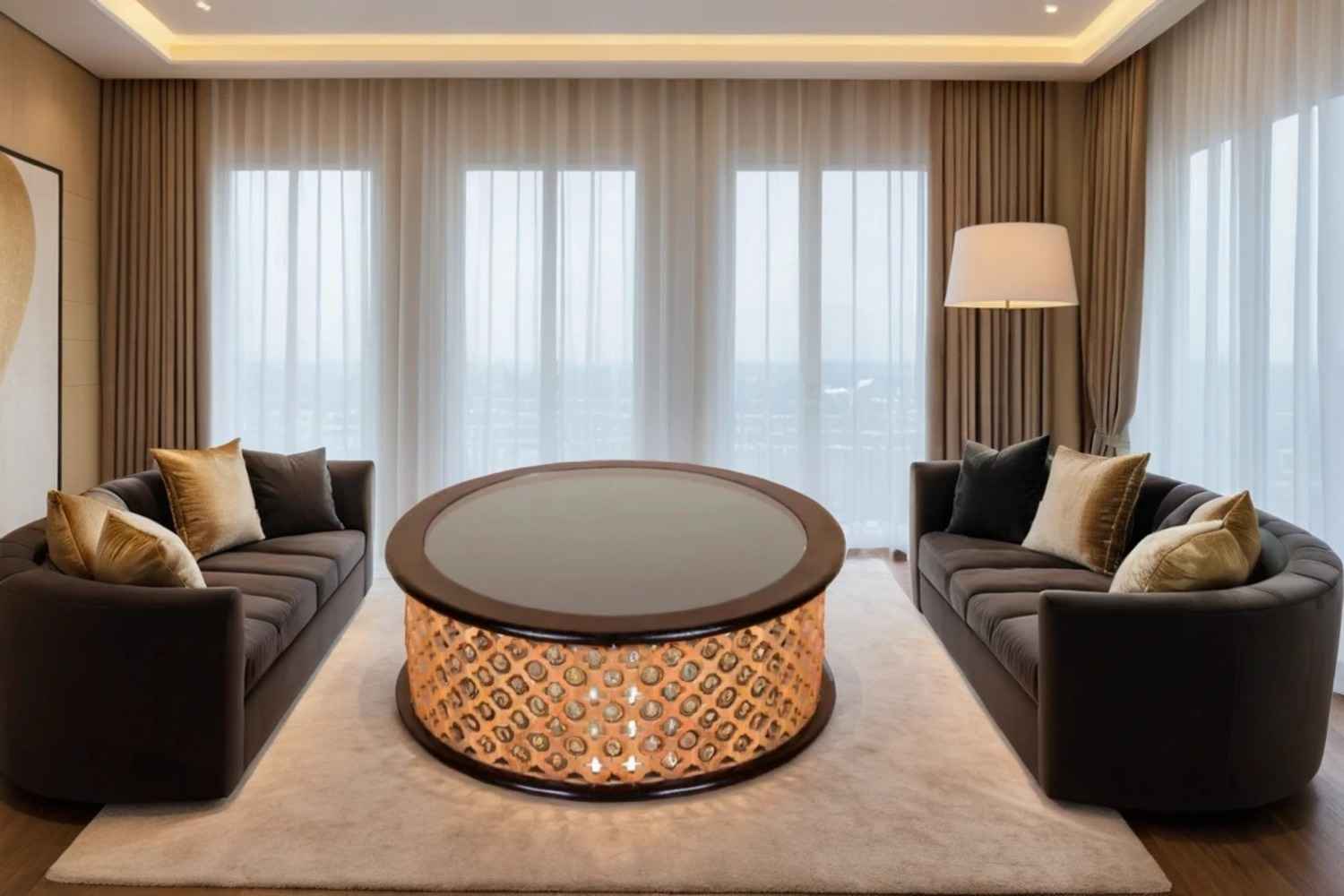 Jamboree Round Light Design Glass Top Coffee Table