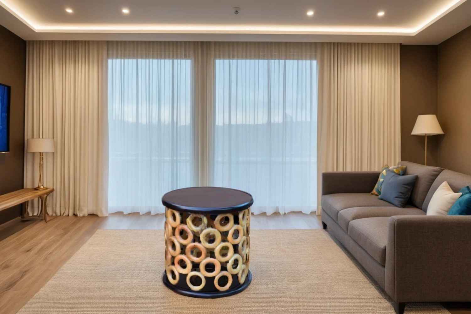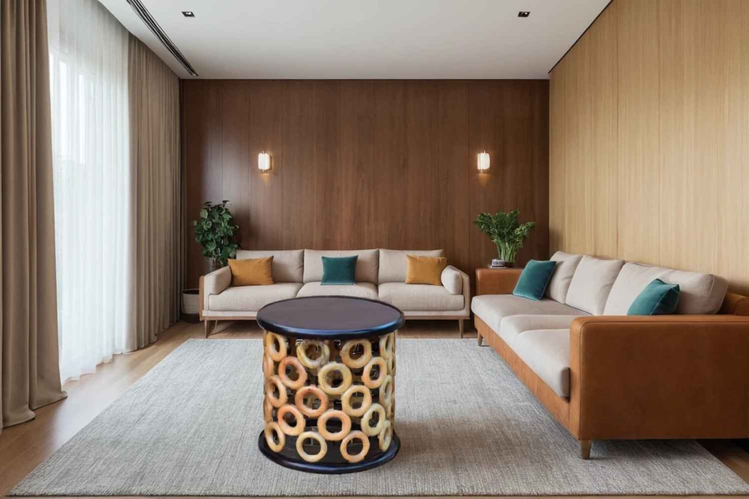 Mondo Circles Round coffee table Made by Solid mango wood with walnut finish in top and natural finish in all round circle. That is round circle designer coffee table. we set multiple circle block for making this beautiful design. O My Furniture deal in solid wood furniture like living room furniture, bedroom furniture , Dining room furniture , study room furniture. O My Furniture work only on quality Furniture on very affordable price.