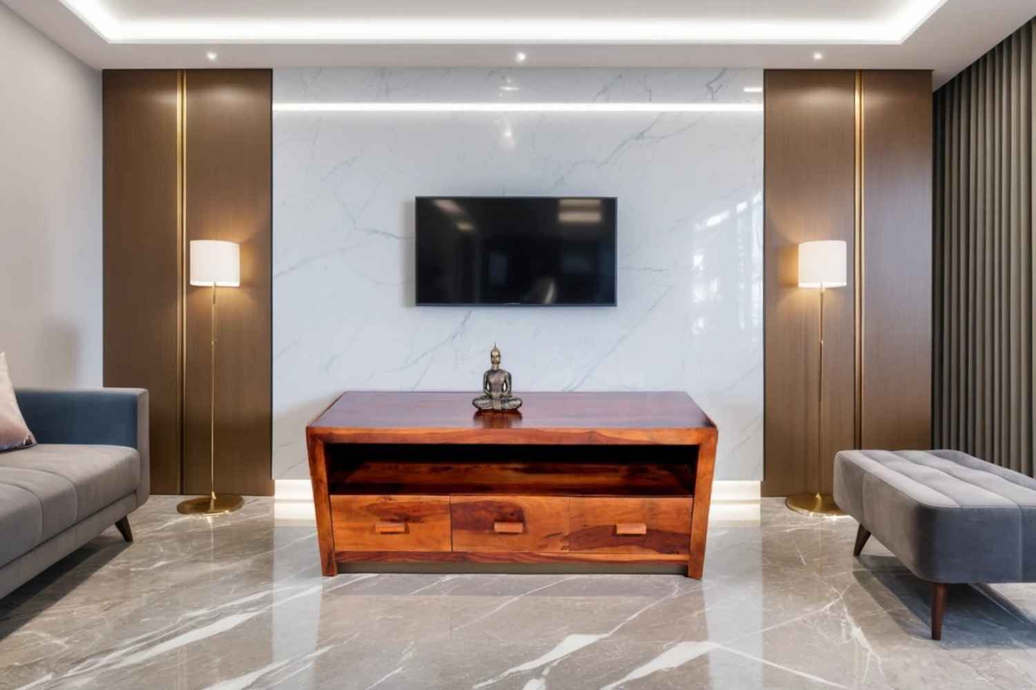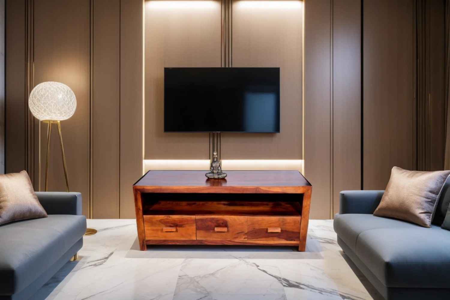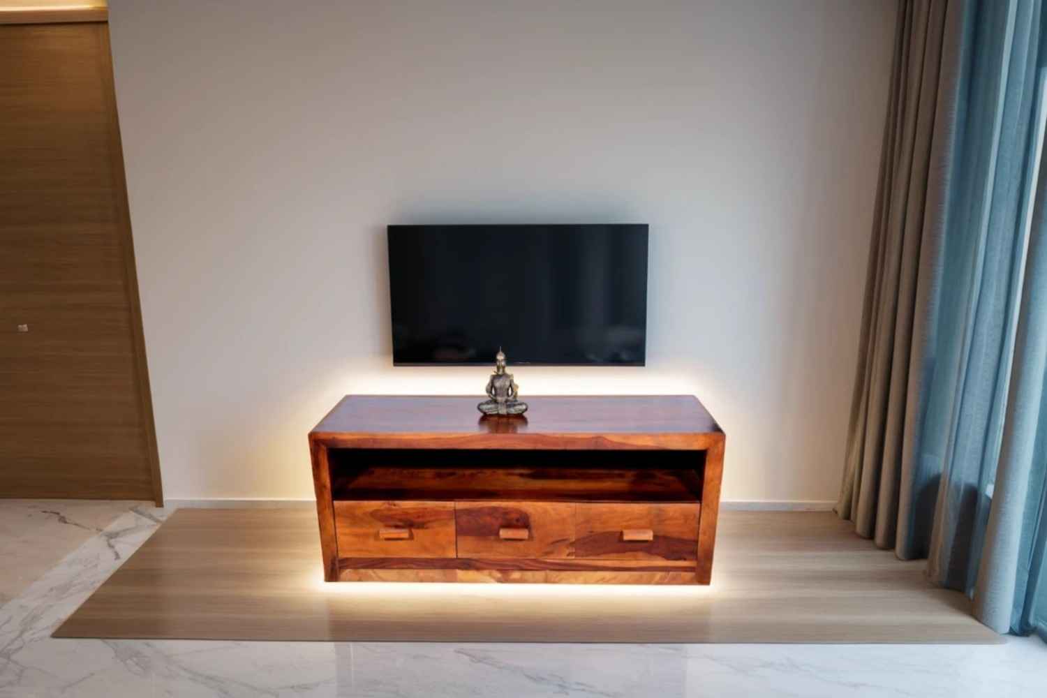 Modern design TV unit is made by Sheesham (Rosewood) with Teak finish. It is a television unit that contains many shelf to separate each section. it is a light weighted and easy to move. Sheesham wood furniture always count as a best quality product to buy. You can buy Sheesham wood furniture online from O my furniture.