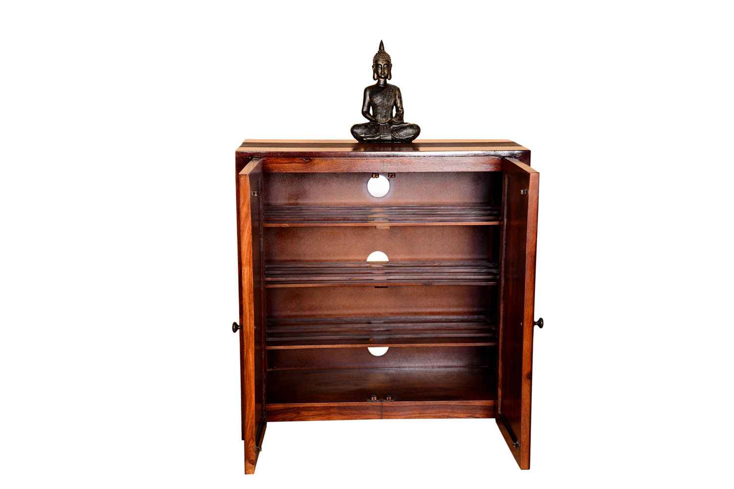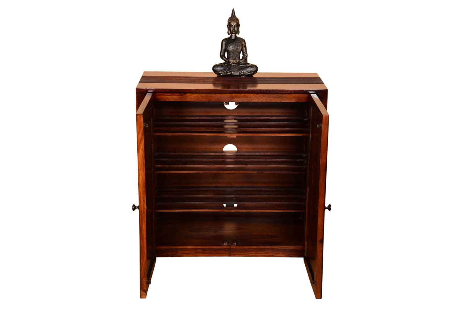 Hood racks teak finish shoe racks is made by Sheesham (Rosewood) with teak finish. It contains three shelf made by wooden strip in the inner portion of the doors. We used iron handle accessories for the doors and coteries design on top middle portion. It is light weighted and easy to move. Sheesham wood furniture product always count as a best quality product to buy. You can buy Sheesham wood furniture online from O my furniture.