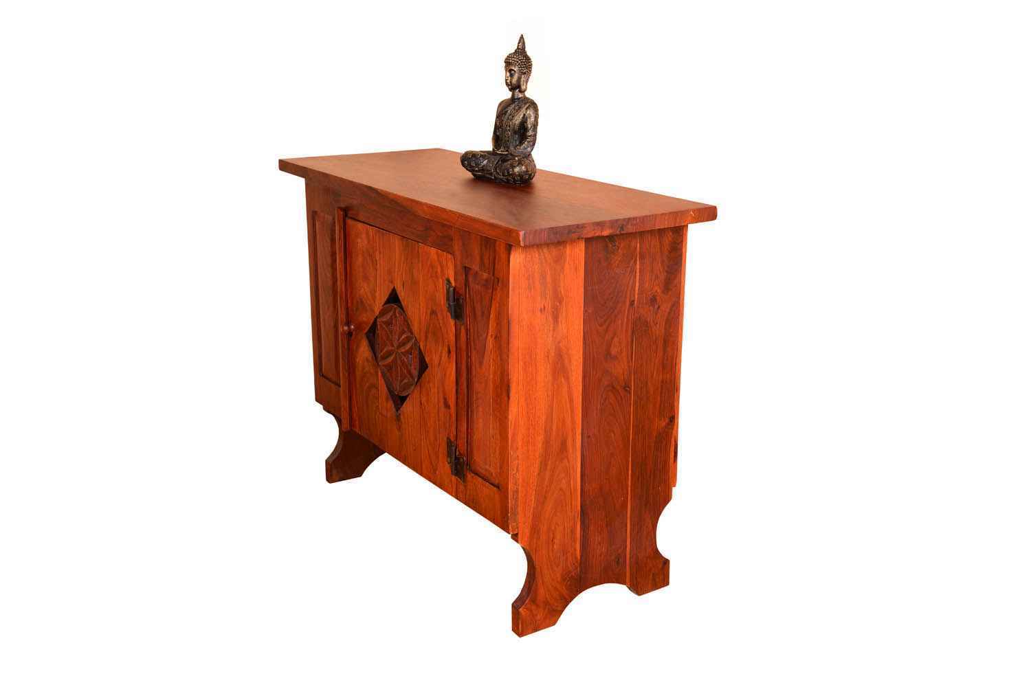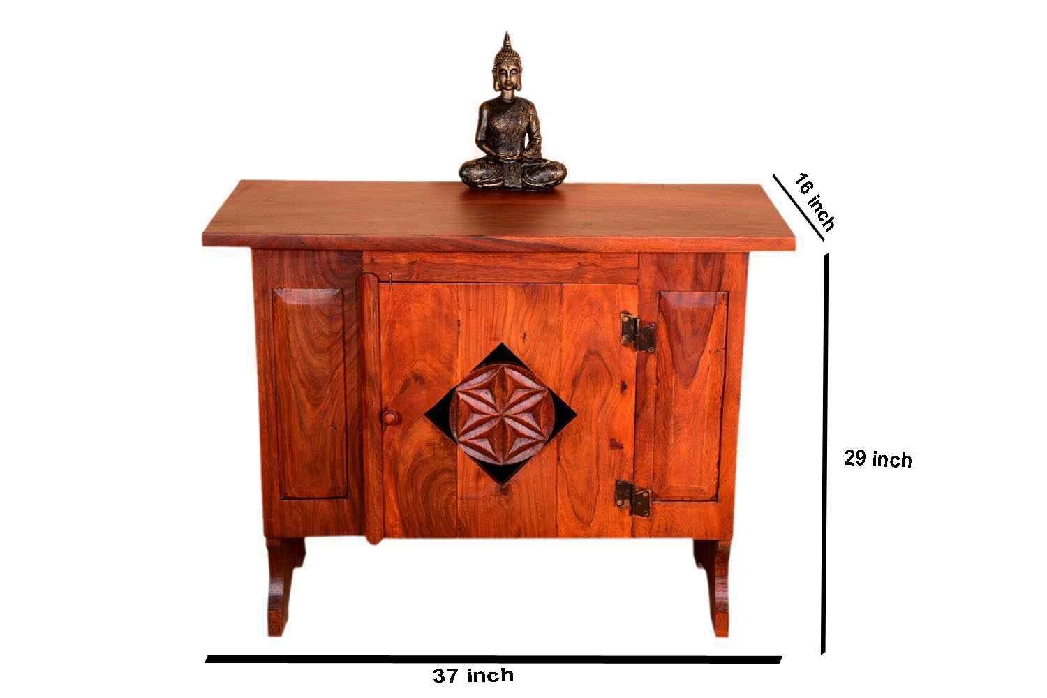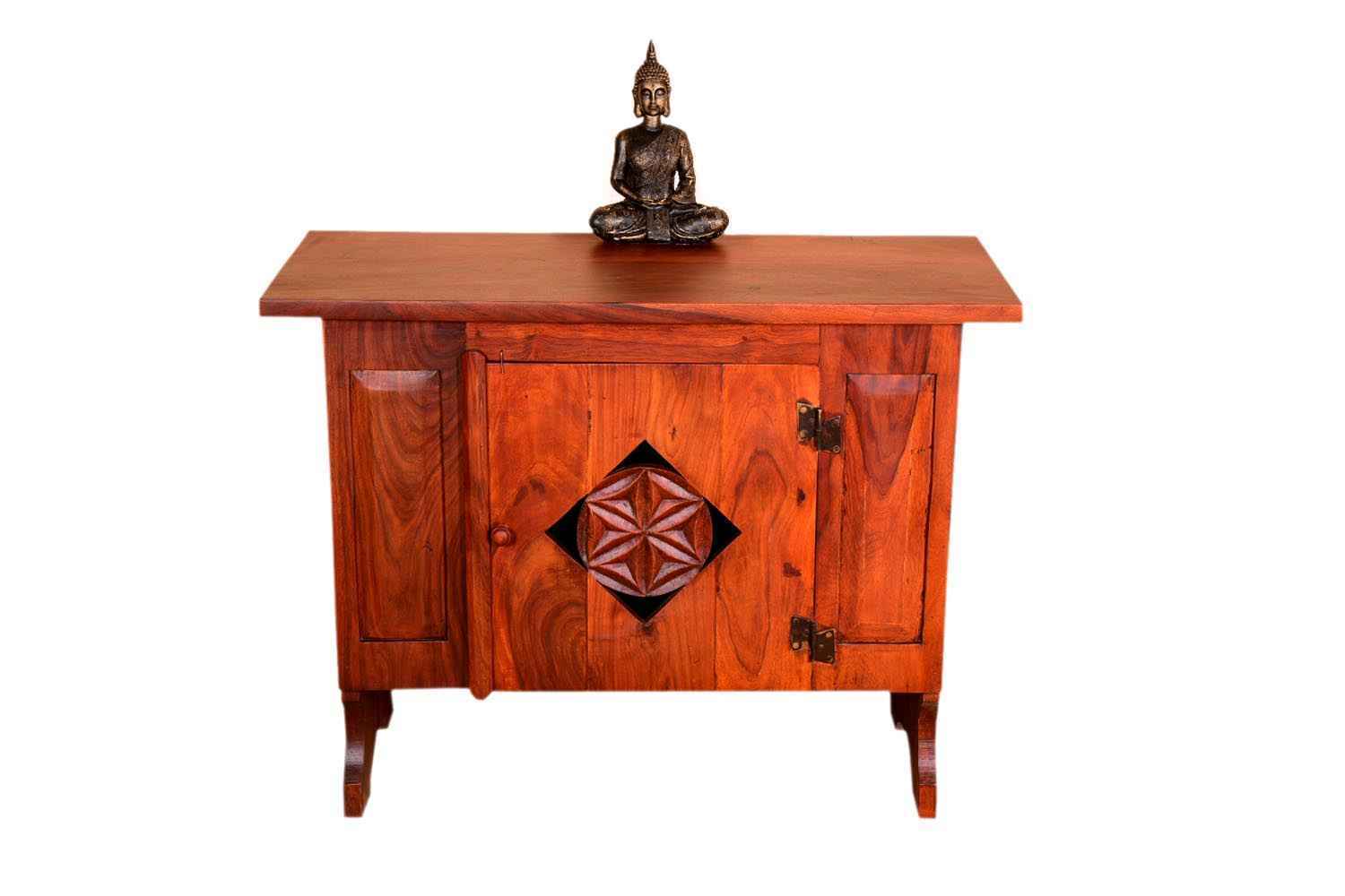 Ambros one door honey finish sideboard is made by Sheesham (Rosewood) with honey finish.It contains one door in middle portion of side board.We used carving on door and wooden handle accessories. Extenuation side portion of front side are in wooden ambros design. Its legs design inspired by mermaid wings and its top is marginally bigger than whole body frame. It is light weighted and easy to shift. It is long life and durable product. Sheesham wood furniture product always count as a best quality product to buy. You can buy Sheesham wood furniture online from O my furniture.