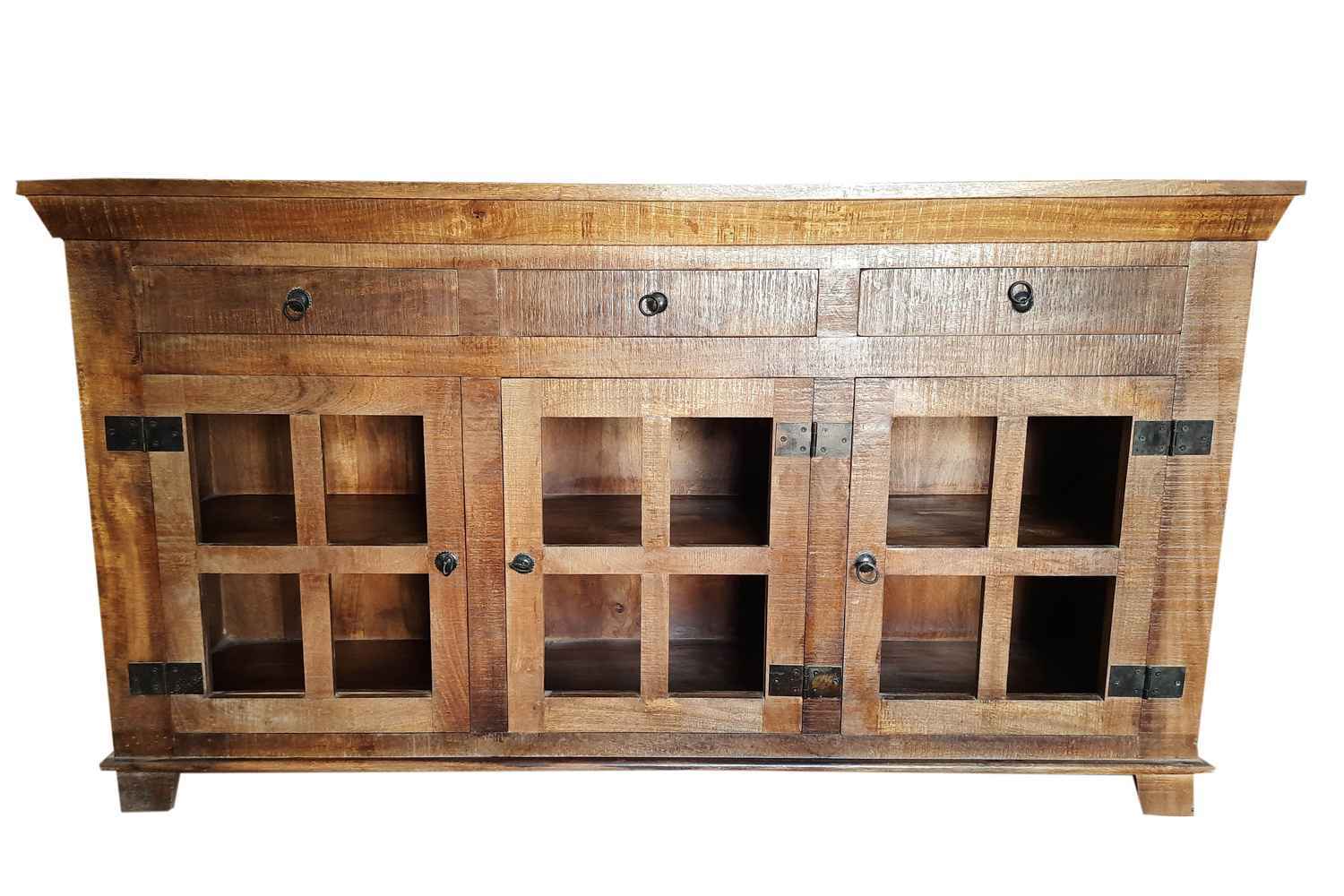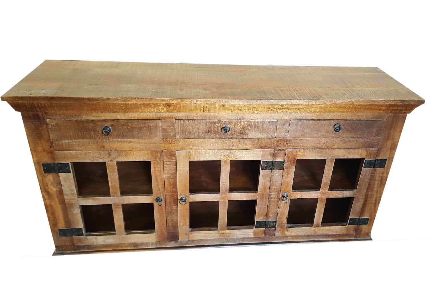 Avian 3 drawer 3 door solid wood aara natural finish Side board  made by mango solid wood with natural aara finish. This is 3 drawer and 3 door side Board with vintage look and design. O My Furniture deal in solid wood furniture like living room furniture, bedroom furniture, Dining room furniture, study room furniture. O My Furniture work only on quality Furniture on very affordable price.