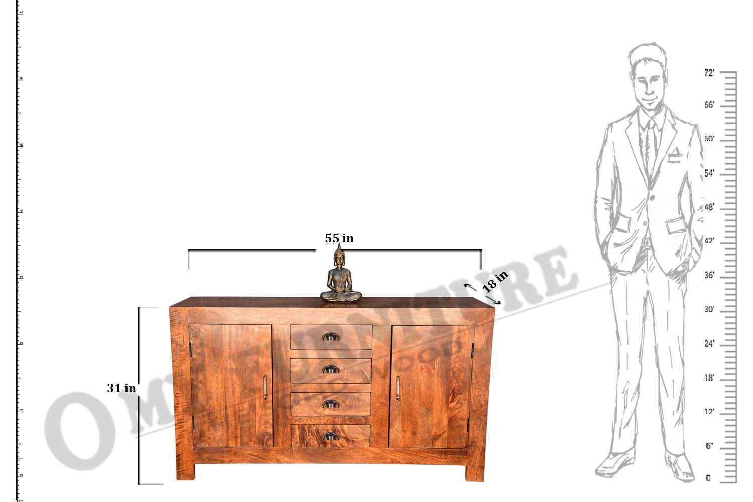 Tringle dakota base side board is made by Mango wood with natural finish. This is three drawer and one door side board. Handle also made by same wood and finish. This is simple design side board that makes your interior more attractive. You can buy Solid wood furniture online from O my furniture.