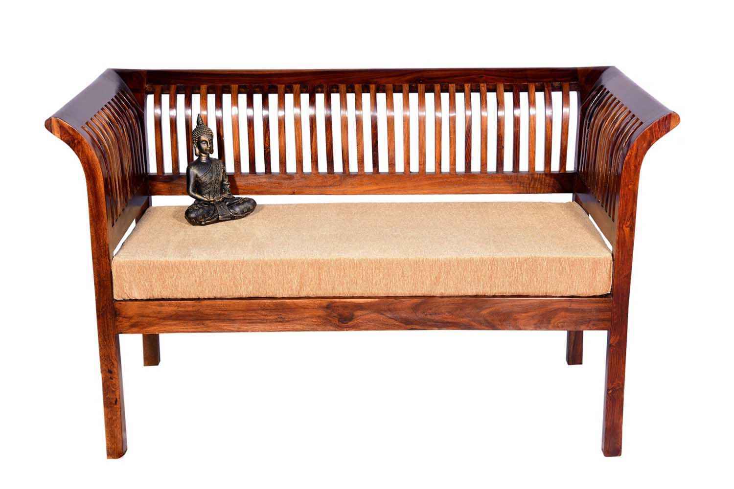 Mayur sofa one sitting is made by Sheesham (Rosewood) with Walnut finish. We use cream color upholstery on sitting and back section. This is single sitting sofa. This is one sitting comfortable and beautiful sofa with handrest. Sheesham wood furniture product always counts as a best quality product to buy. You can buy Sheesham wood furniture online from O my furniture.