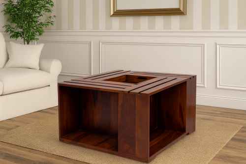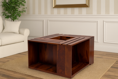 Magazine half Bottom shelf with natural finish coffee table is made by Sheesham (Rosewood) with teak finish.It is Sheesham wood coffee table that contain bottom shelf in half bottom area.It is a square shape coffee table and a square shape slit line curve on top.Coffee table is light weighted and easy to move. Sheesham wood furniture always count in best quality furniture.O my furniture a complete Solid wood furniture stores help to increase your living room and bedroom decorum.
