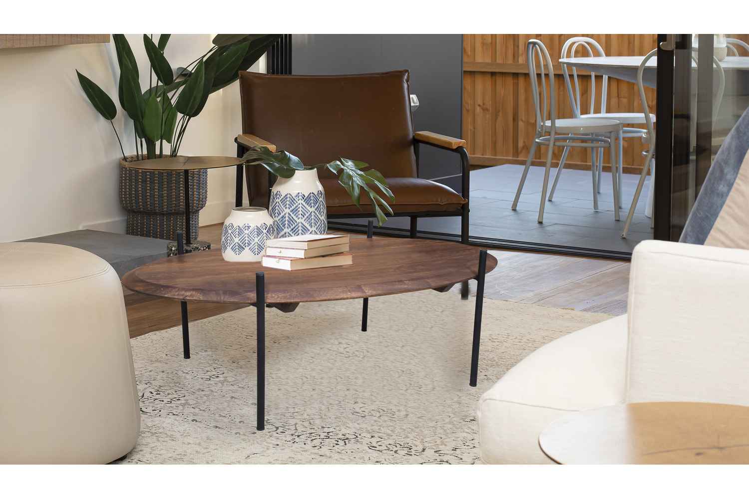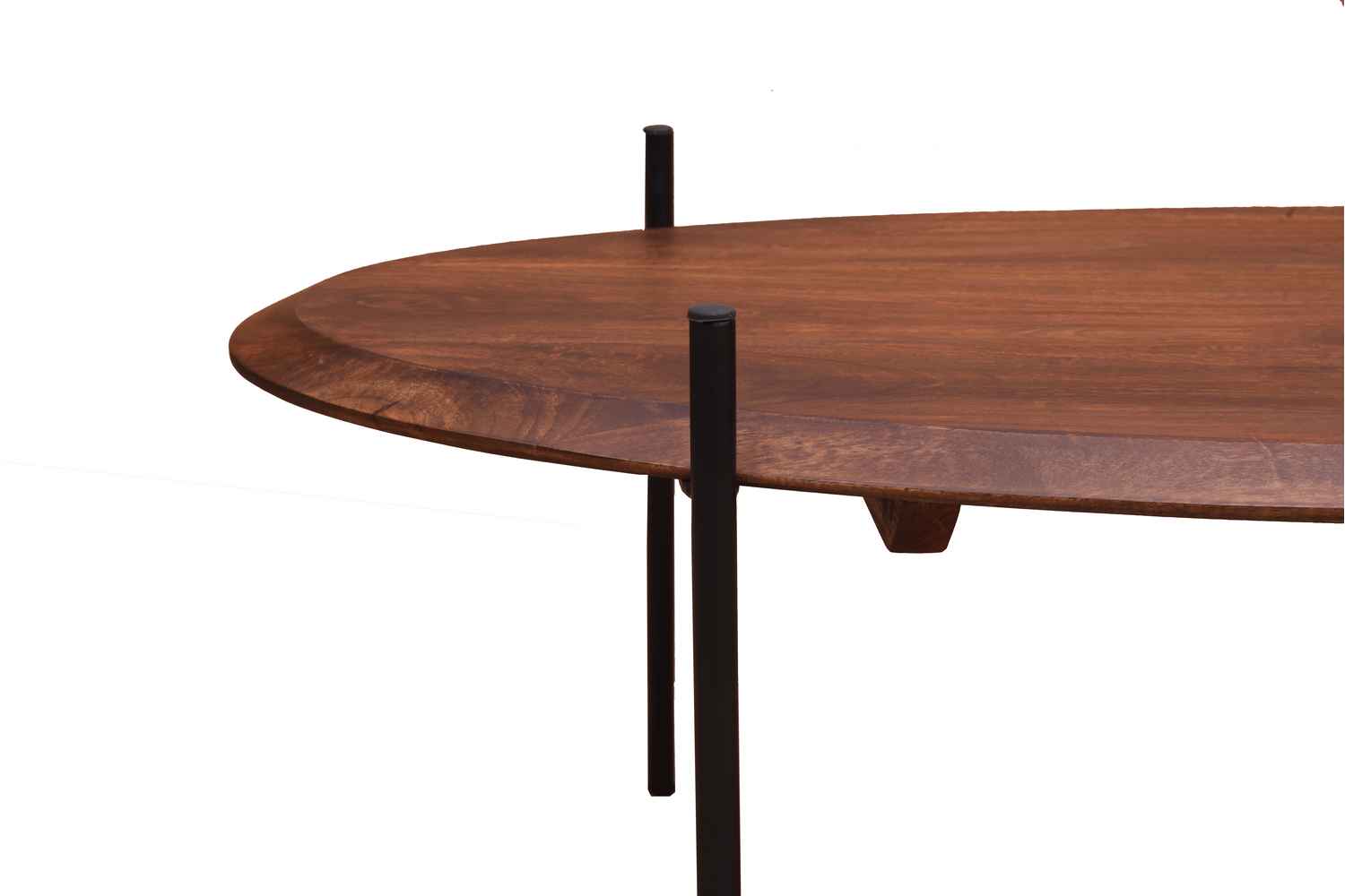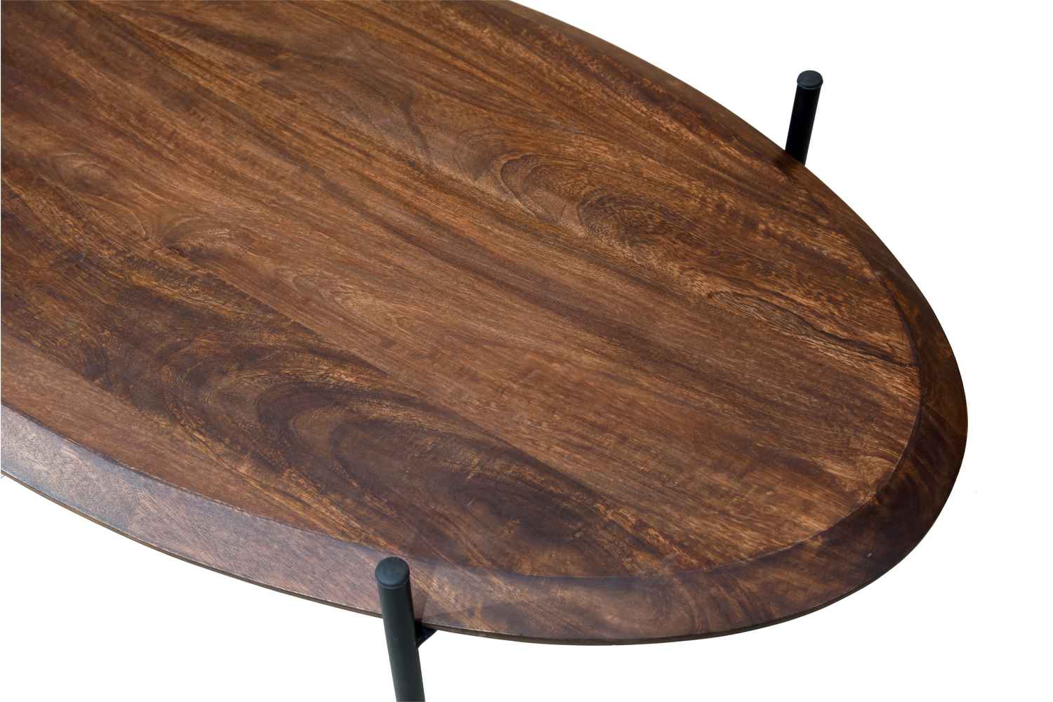 Damru round coffee table is round shape coffee table with powder coated iron base.This coffee table made by Mango wood with walnut finish and iron.It shape like two cone enters each other.A shelf attached in middle portion.It’s iron base giving prefect look.O my furniture a complete Solid wood furniture stores help to increase your living room and bedroom decorum.