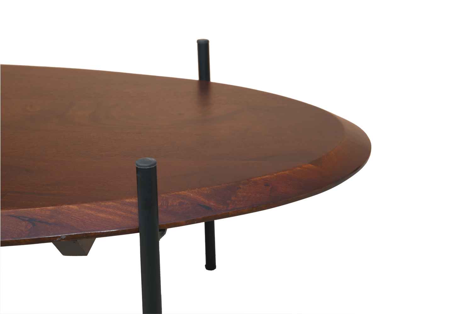 Damru round coffee table is round shape coffee table with powder coated iron base.This coffee table made by Mango wood with walnut finish and iron.It shape like two cone enters each other.A shelf attached in middle portion.It’s iron base giving prefect look.O my furniture a complete Solid wood furniture stores help to increase your living room and bedroom decorum.