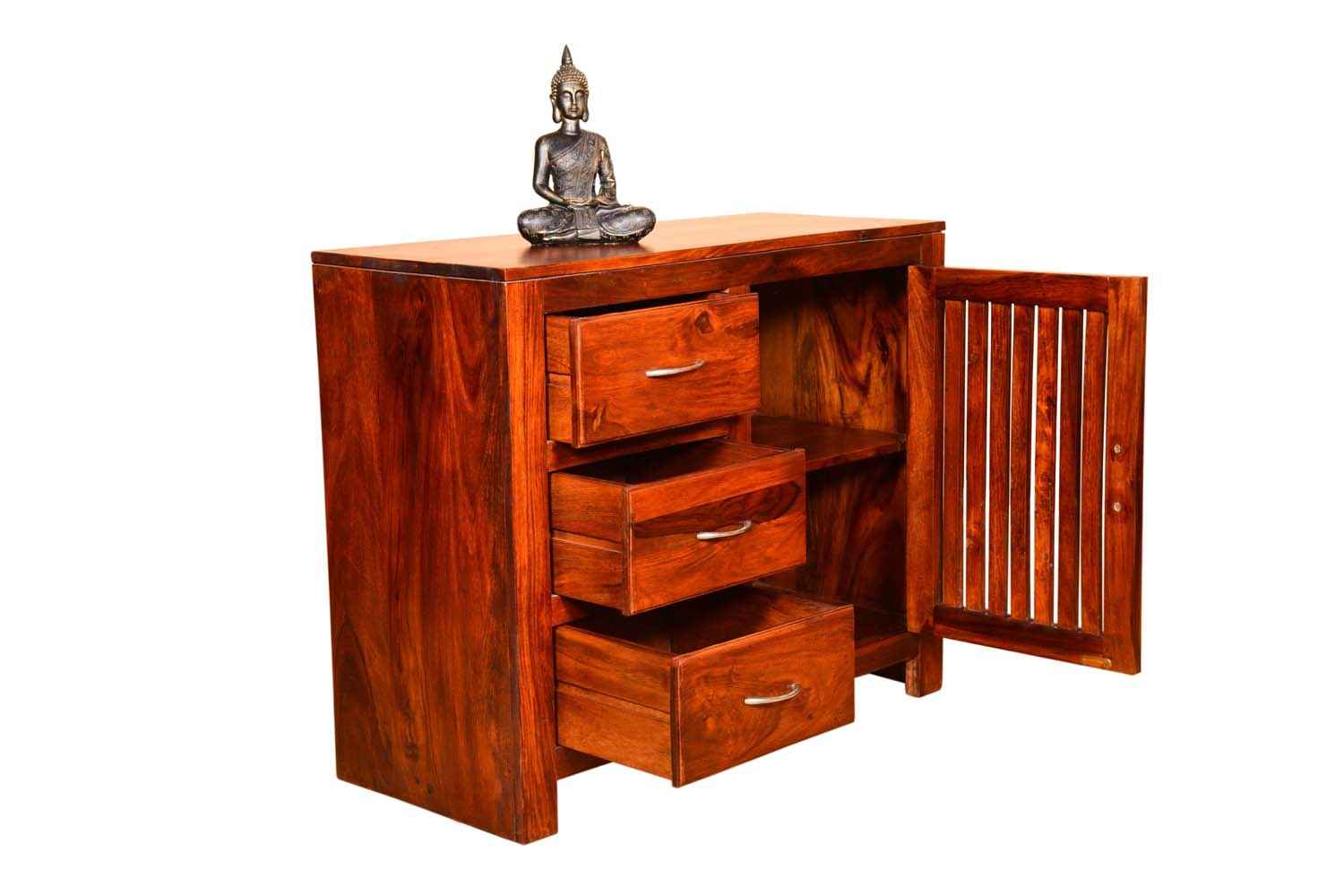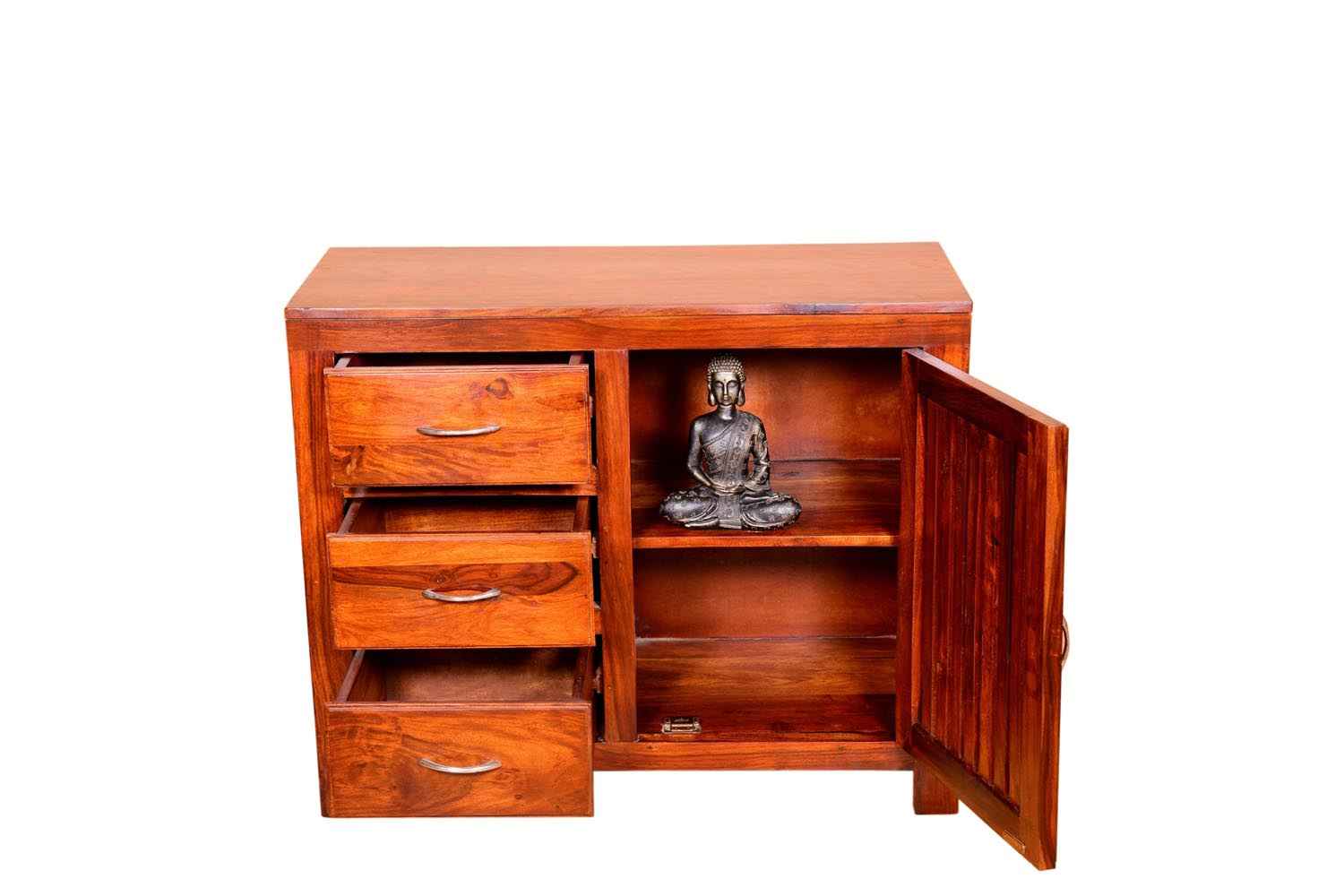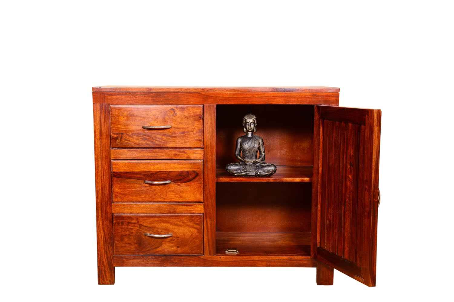 Tringle dakota base side board is made by Mango wood with natural finish. This is three drawer and one door side board. Handle also made by same wood and finish. This is simple design side board that makes your interior more attractive. You can buy Solid wood furniture online from O my furniture.