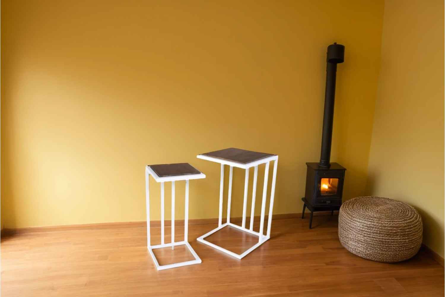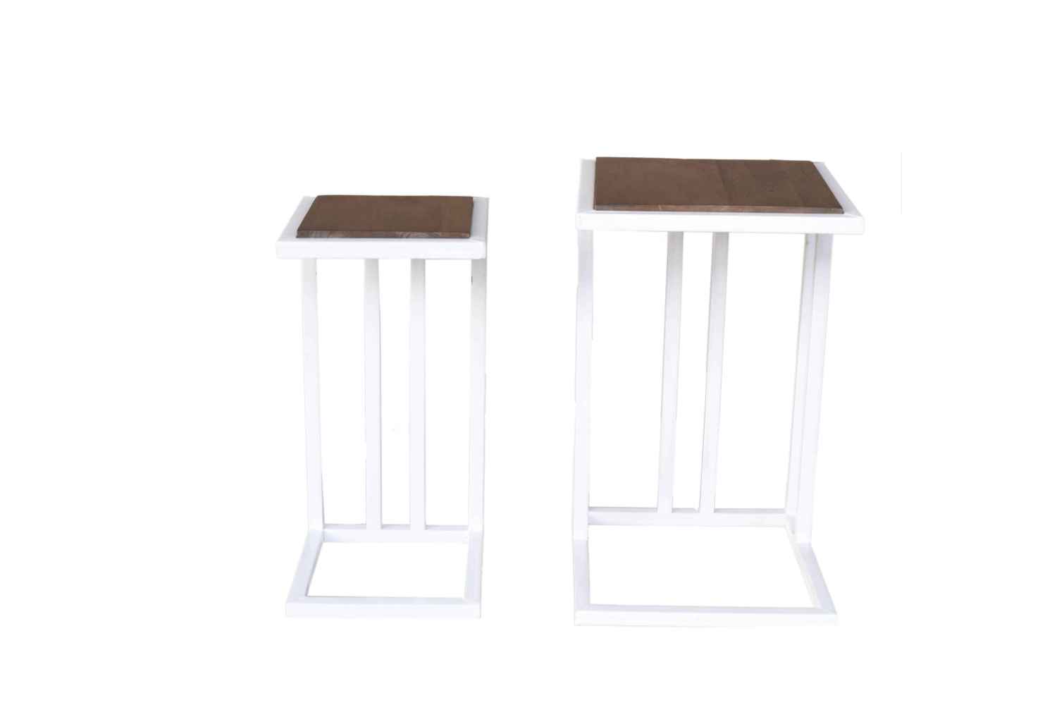 Blossom Iron White Décor side table - Set of 2 made by solid wood with teak finish in top and bottom is made by Powder coated Iron. These stool are use for multipurpose. like side table and outdoor coffee table as well as. O My Furniture deal in solid wood furniture like living room furniture, bedroom furniture , Dining room furniture , study room furniture. O My Furniture work only on quality Furniture on very affordable price.