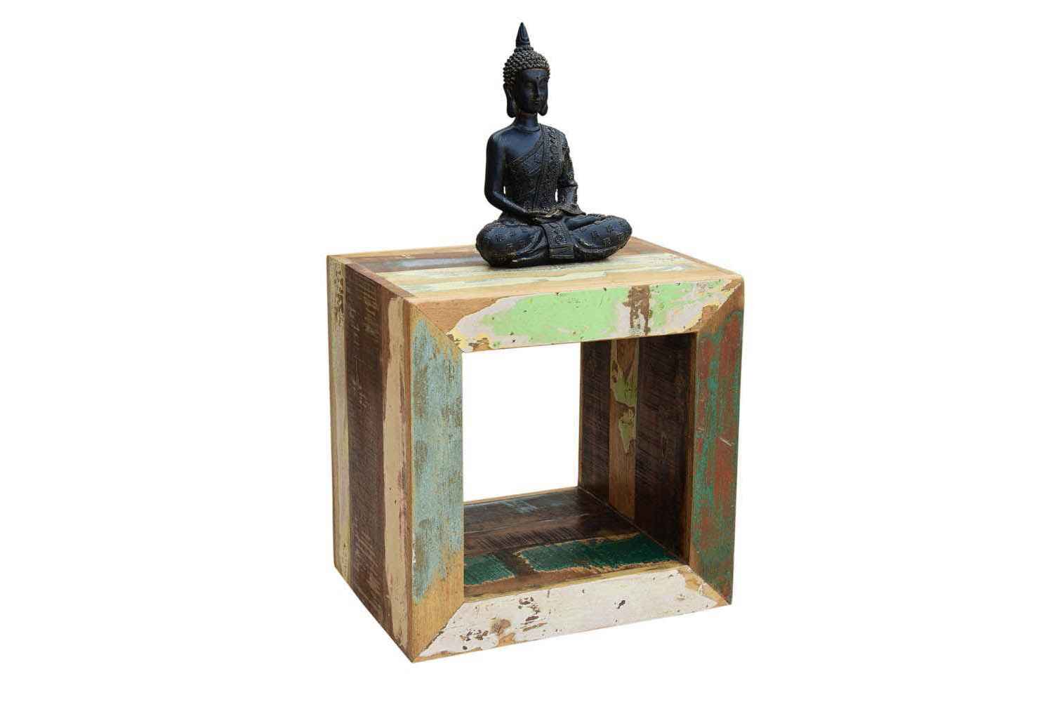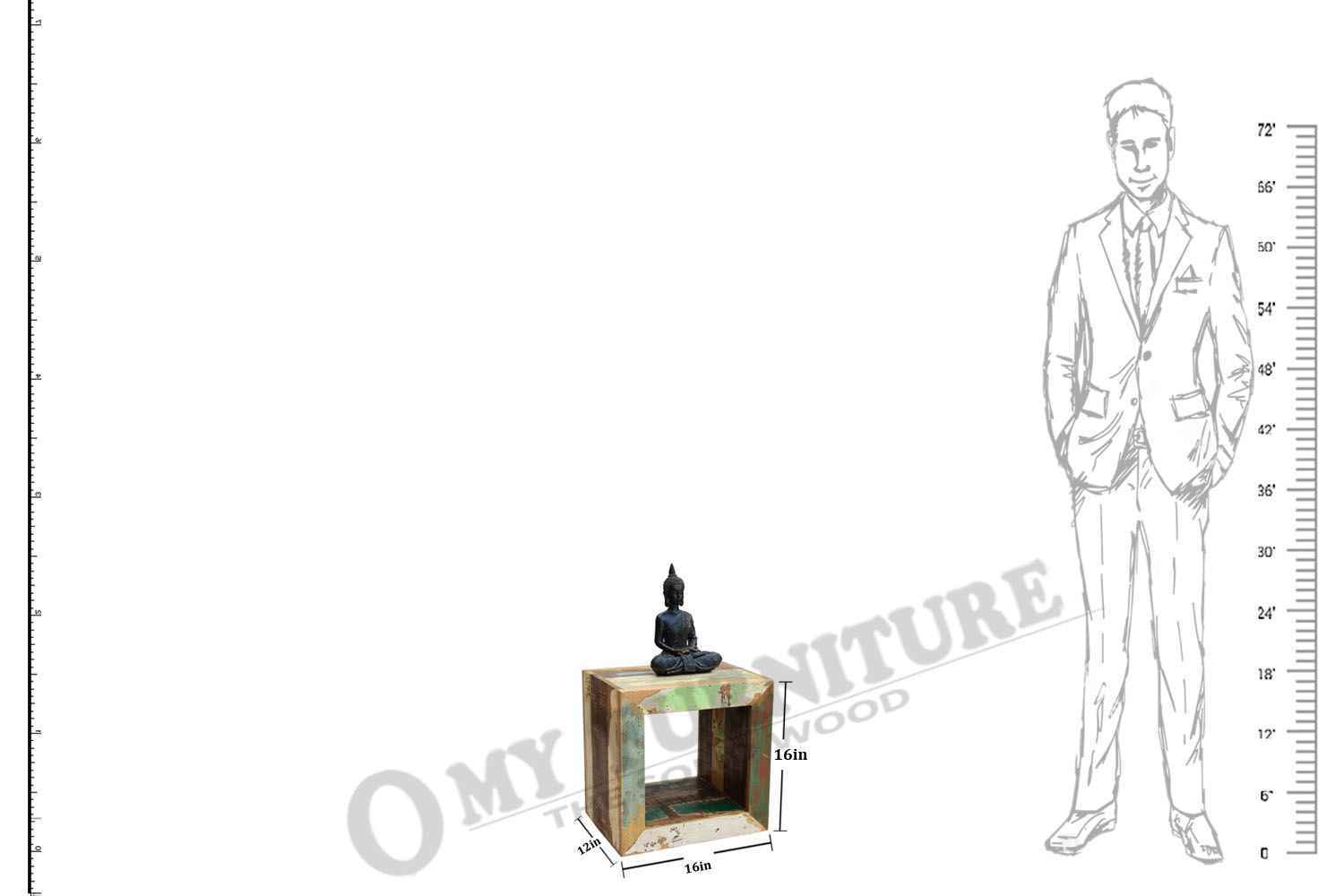 Eligio hollow Stool is made by recycle wood with natural finishing. It is a square shaped hollow pattern  bedside that make your interior more attractive.