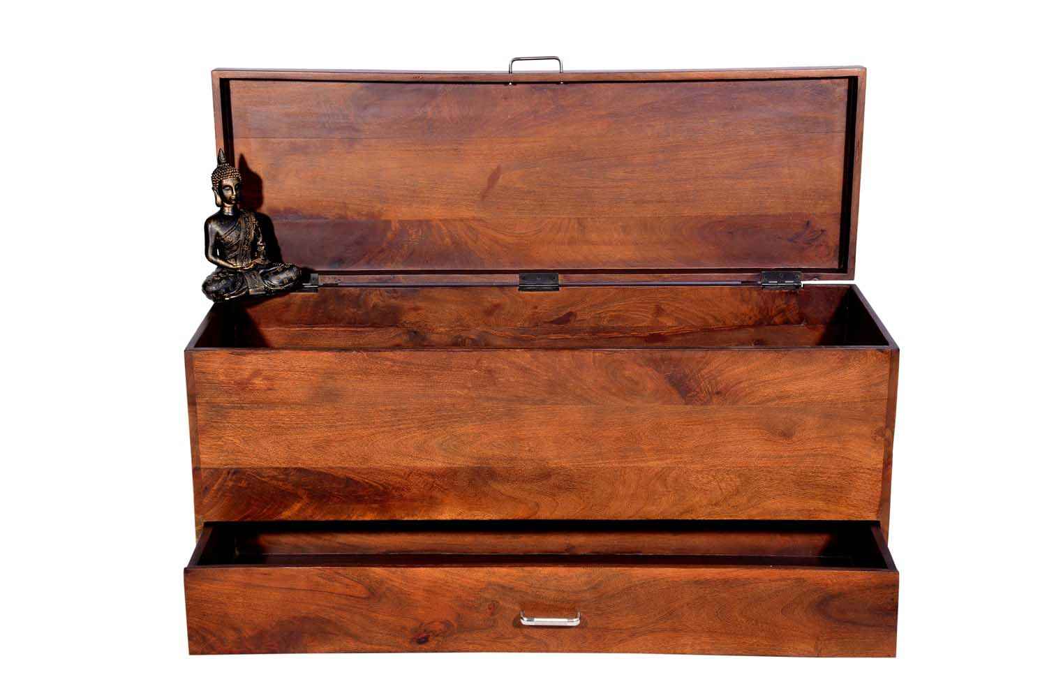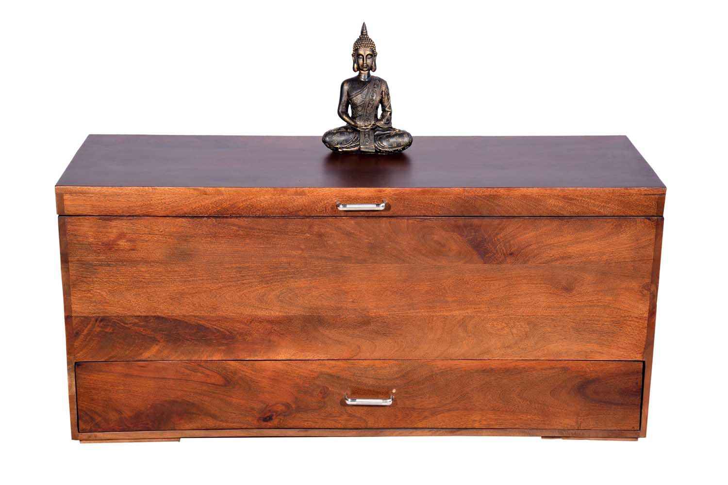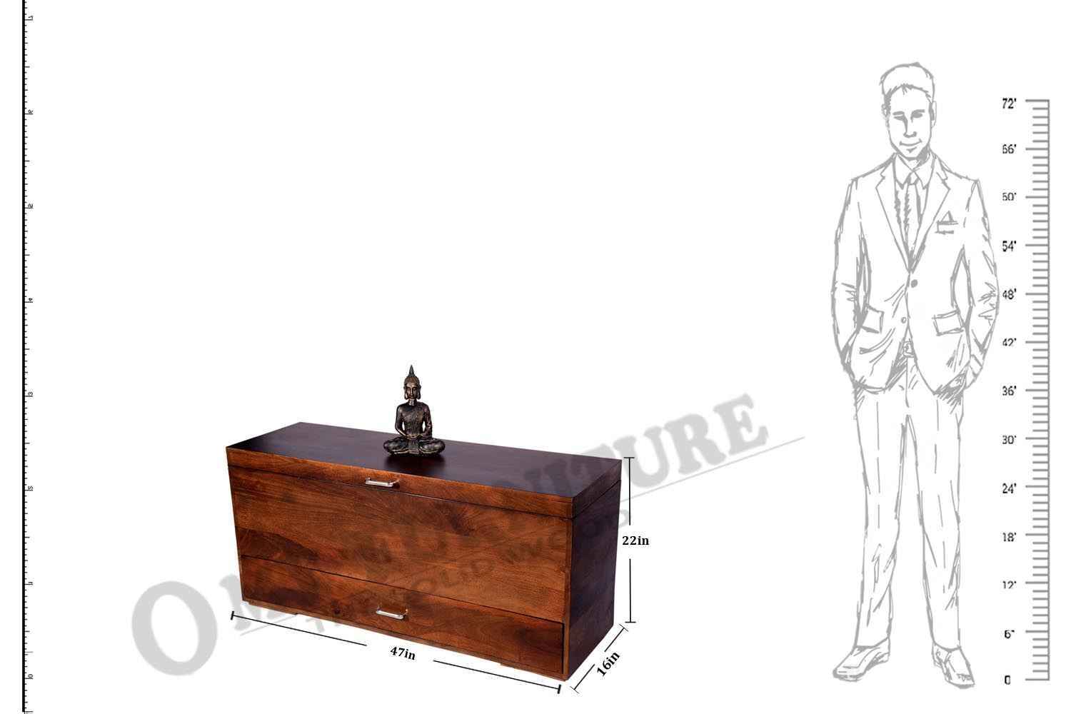 Spline Blanket box is made by Mango wood with Walnut and natural finish. It is a rectangle shape trunk box. It contain zigzag carving strips in middle portion with natural finish and it’s door attached with flap functionality that contains iron and wooden hardware accessories. It is light weighted and easy to move. This blanket box is designed so beautifully that make your interior attractive. You can buy Solid wood furniture online from O my furniture.