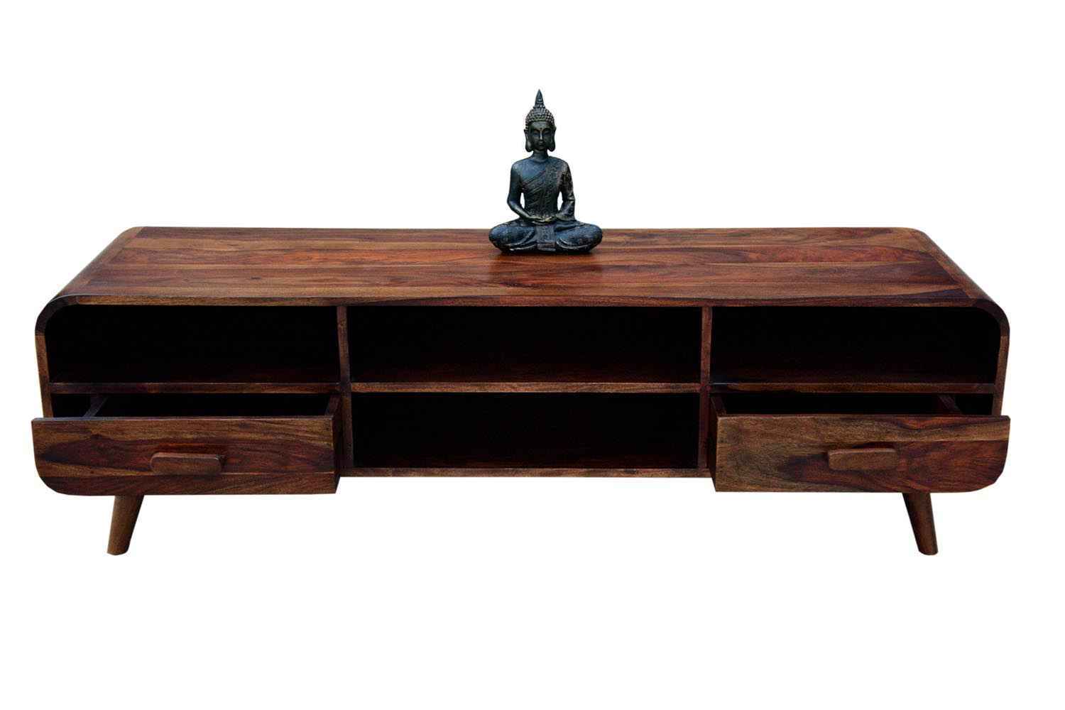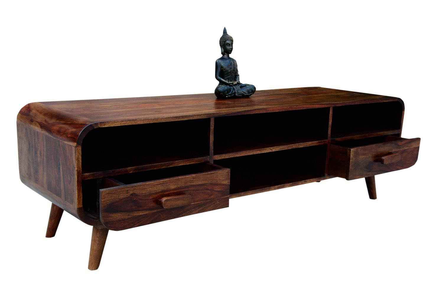 Racto two drawer curve accessories design tv unit is made by Sheesham (Rosewood) with natural finish.It is a small television unit.It contain two drawer and one separate section.Two half curve on drawer to open easily. It is light weighted and easy to move. Sheesham wood furniture always count as a best quality product to buy. You can buy Solid wood furniture online from O my furniture.